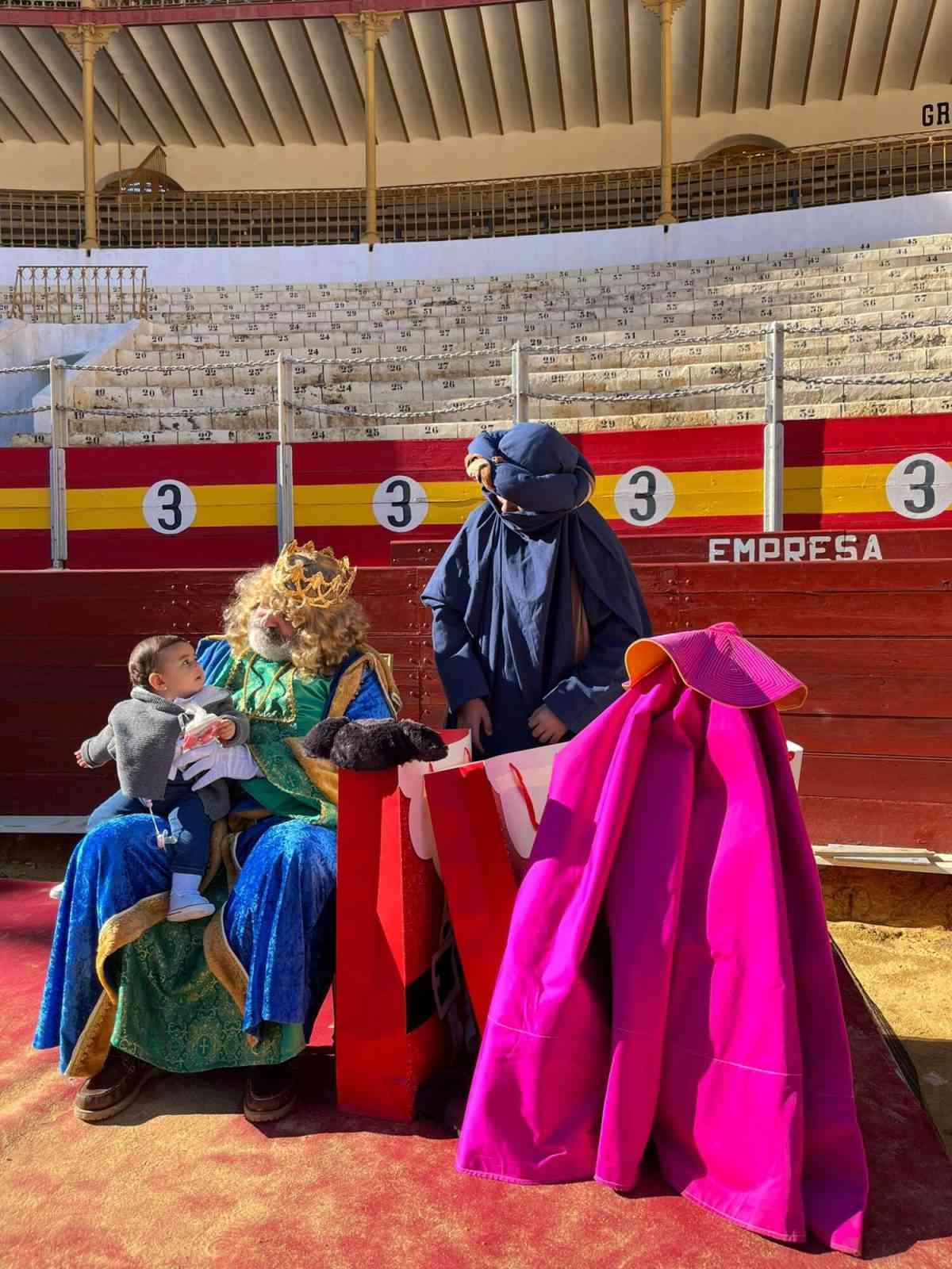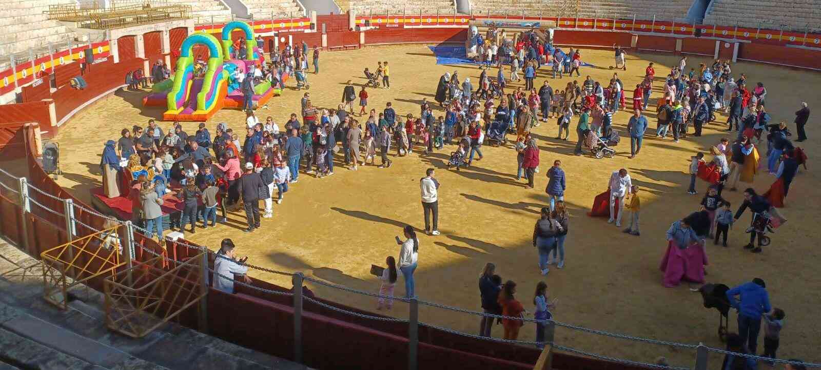 Los más pequeños han disfrutado regalos castillos hinchables, carretones de toros, han aprendido a jugar al toro con capotes y muletas y han recibido la visita de los Reyes Magos de Oriente; además de chucherías y mucho juego y donde se han repartido 500 regalitos.