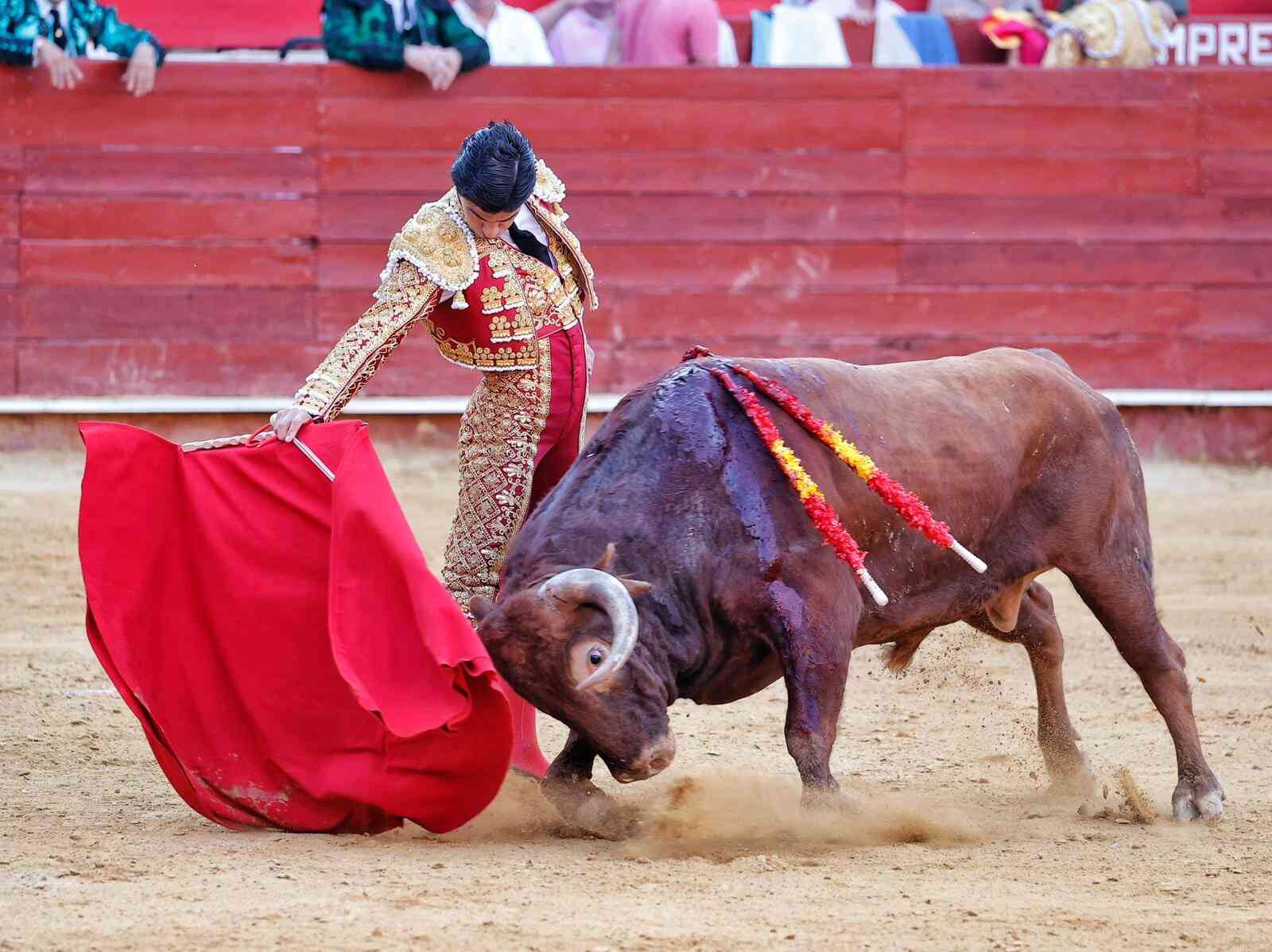 Talavante se las vio con un primer toro justo de fuerza. Buen recibo con el capote, pero pronto se apagó en la muleta. Lo intentó Talavante por ambos pitos, robándole algunos muletazos al natural. Fue ovacionado.