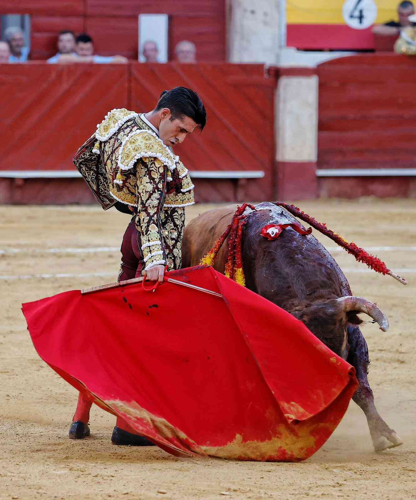 En el cuarto, Talavante saludó con el capote por faroles y con la muleta cuajó una gran faena, elegante trasteo, siempre dándole los tiempos a un buen toro de Criado Holgado. Una serie de naturales de gran profundidad levantó al público, al igual que las rematadas manoletinas del final. Estocada efectiva. Oreja tras petición de la segunda. Bronca al presidente. Talavante dio hasta dos vueltas al ruedo.