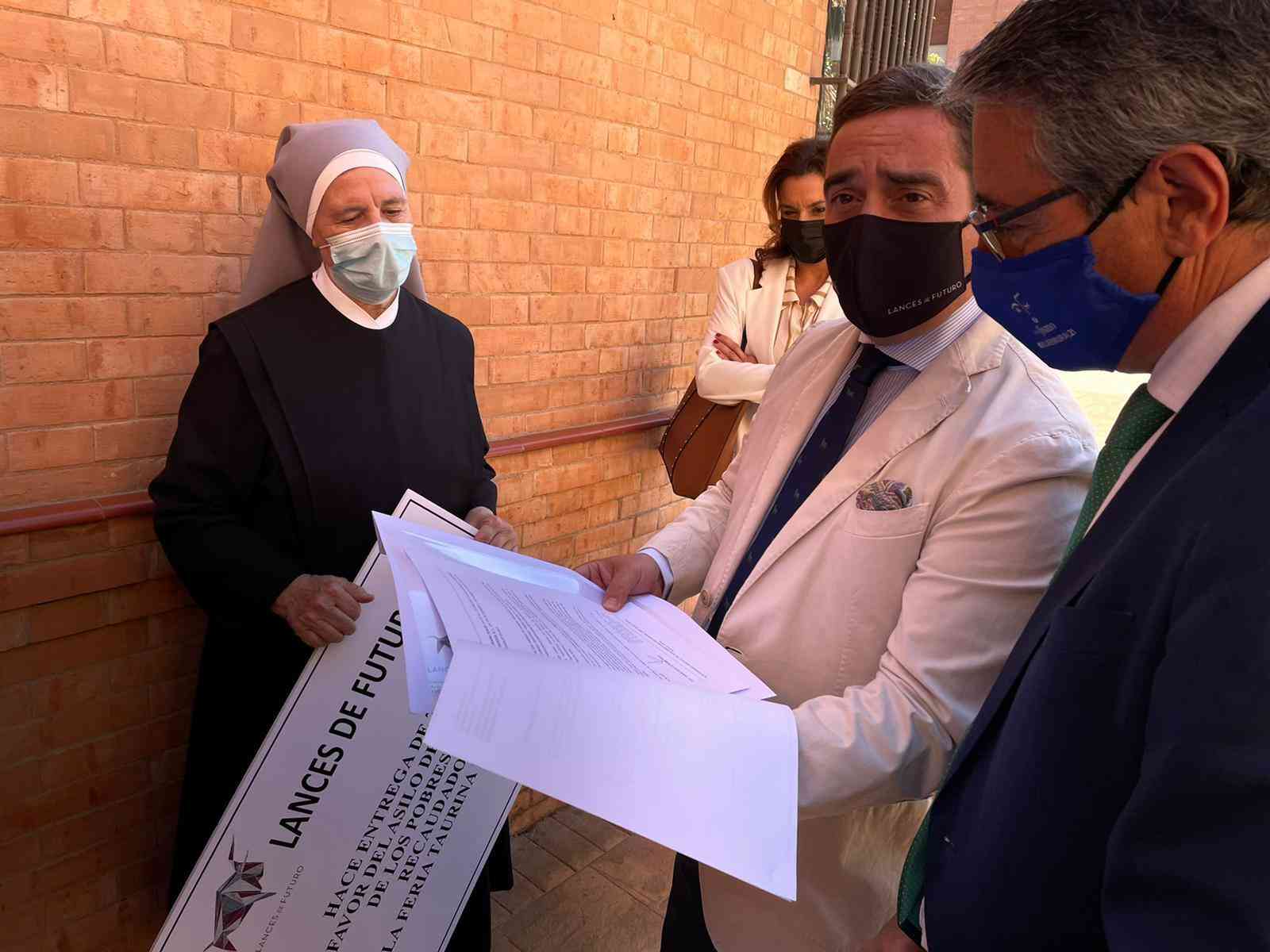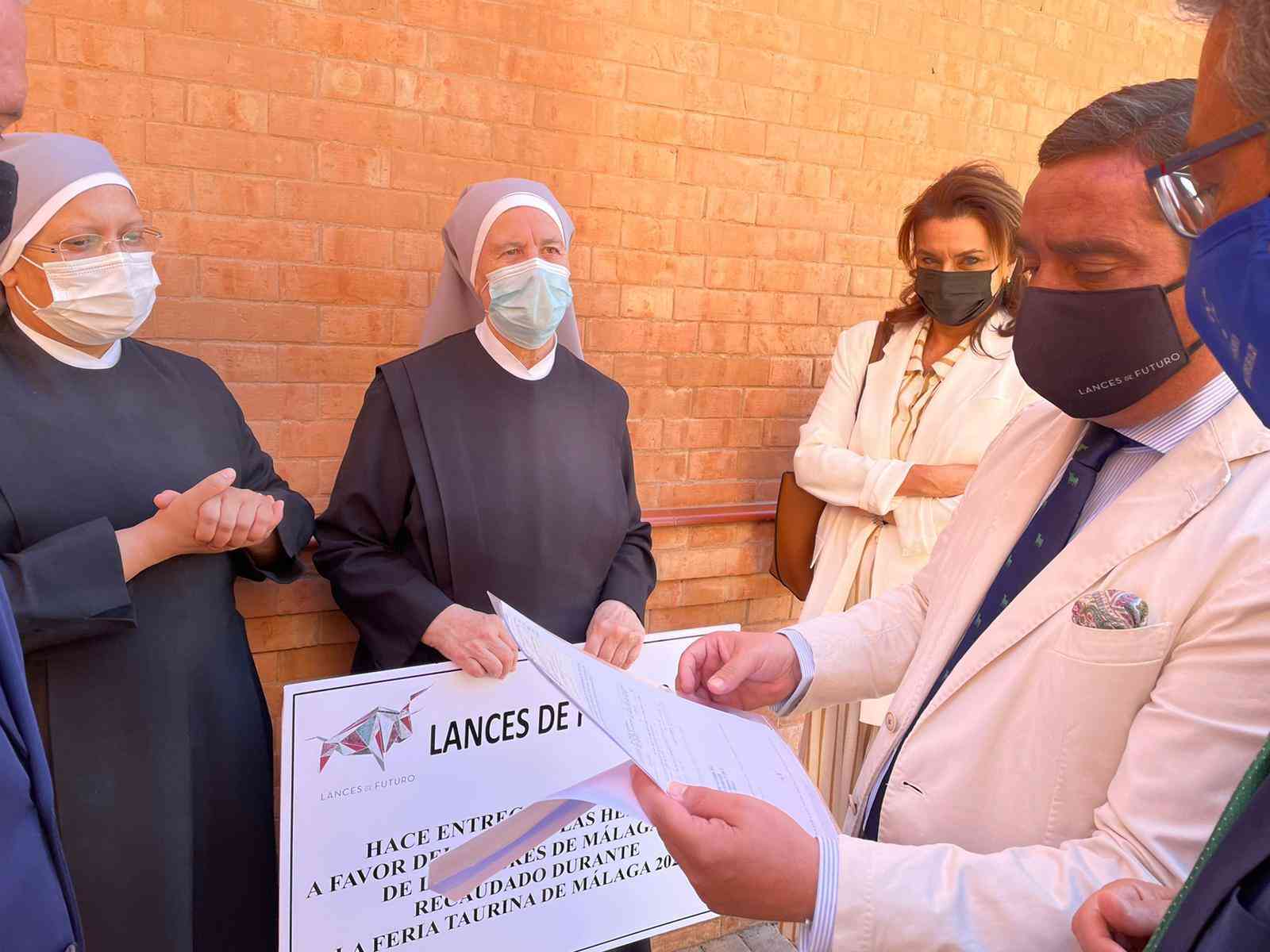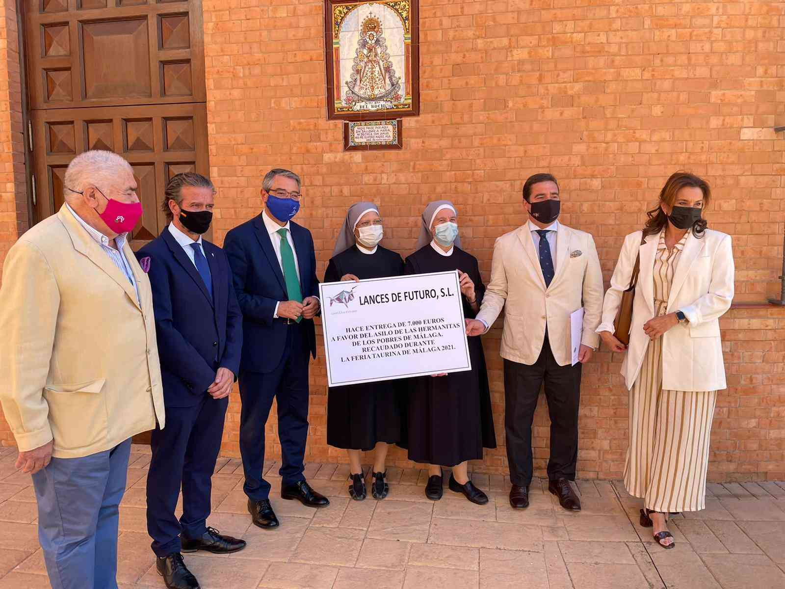 El primer acto ha tenido lugar en el Asilo de las Hermanitas de los Pobres, cuya madre superiora, María Dolores Pérez, ha recibido un talón por importe de 7.000 euros, en presencia de hermanas de la comunidad, usuarios de la residencia y del benefactor Juan Manuel del Pozo, aficionado a los toros y colaborador de las Hermanitas de los Pobres en asuntos taurinos.