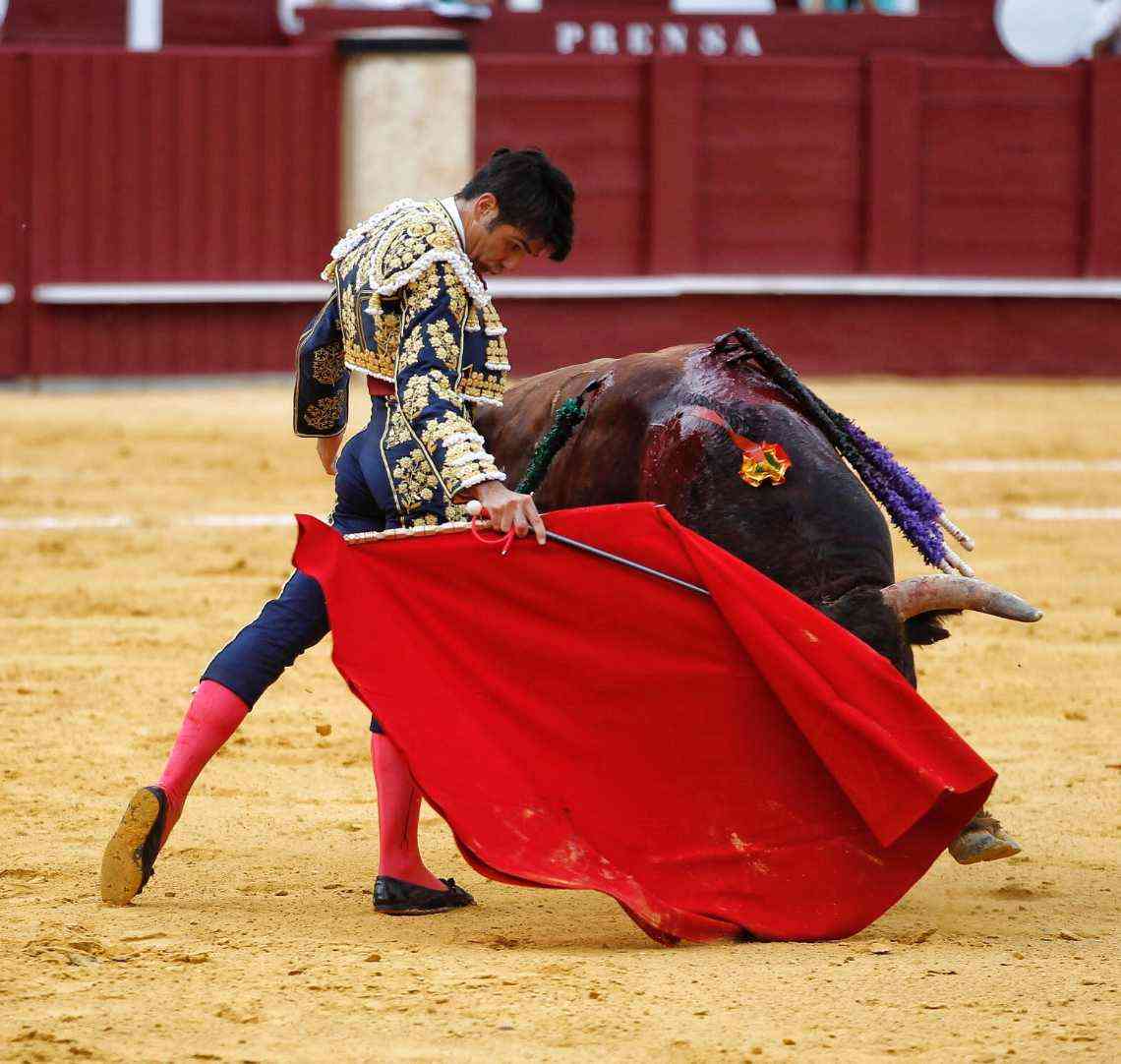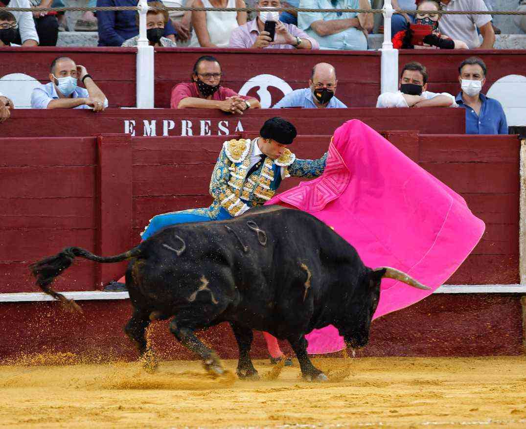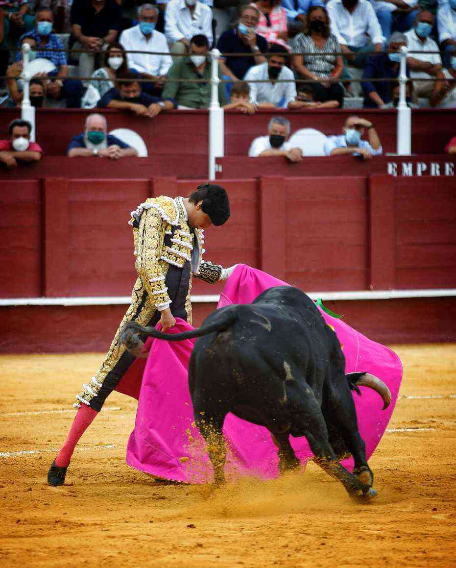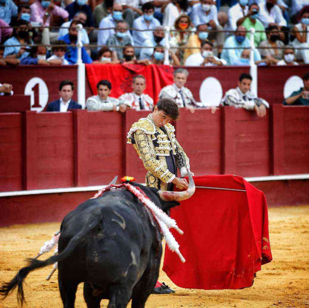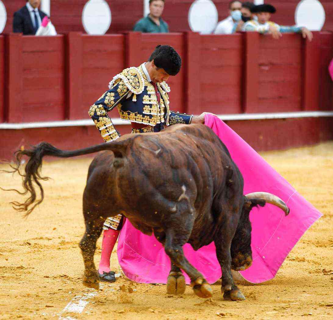 Vega cuajó los naturales más relajados de la tarde. Bella faena del malagueño dándole la distancia y las pausas necesarias al de Daniel Ruiz, primero de su lote. Series con temple, con los pies asentados y con gusto. El susto se lo llevó tras ser volteado por el animal. Se repuso y le pegó varios naturales de gran belleza. Estocada y oreja.