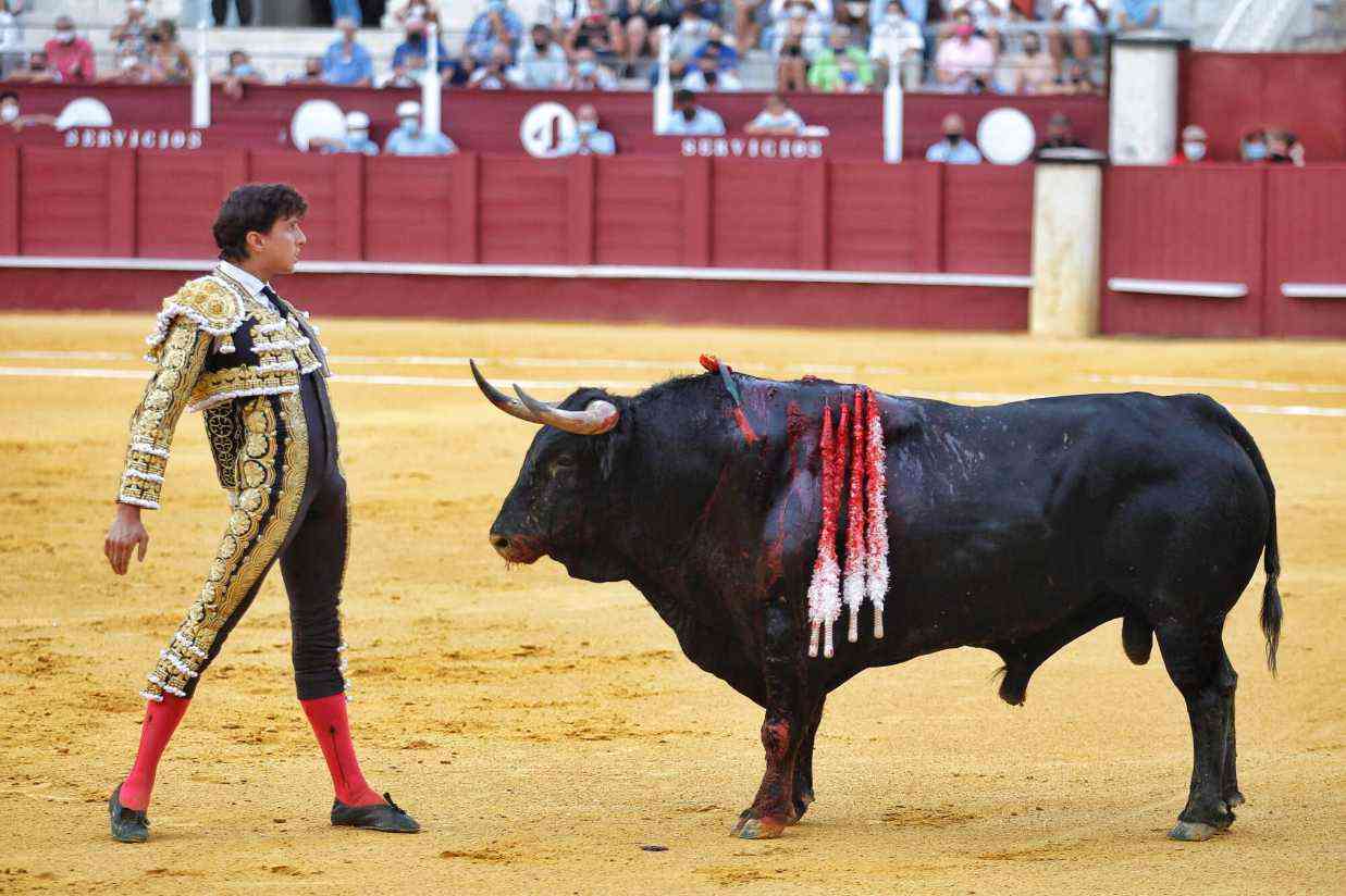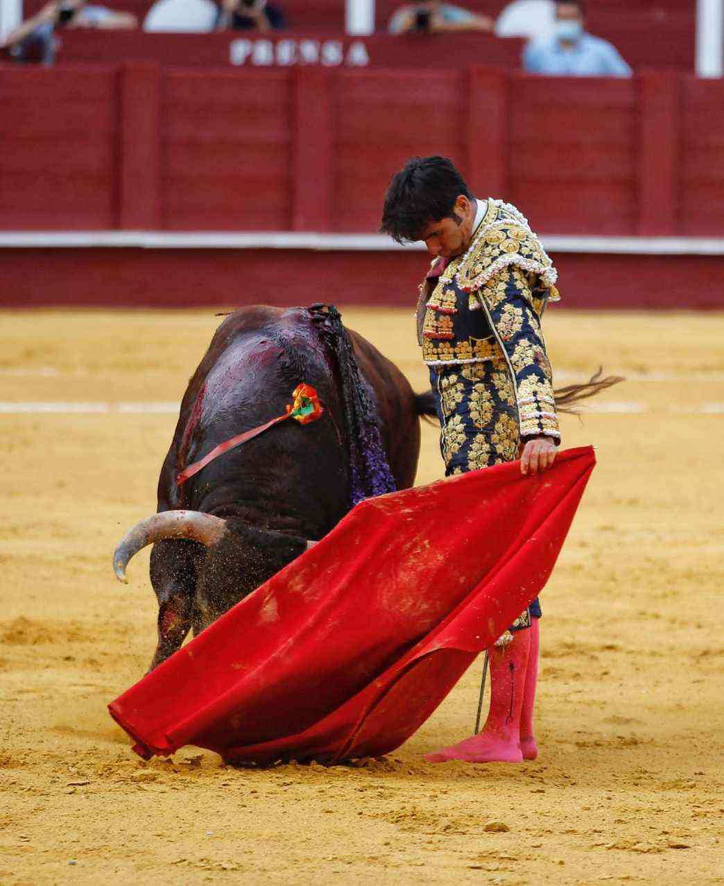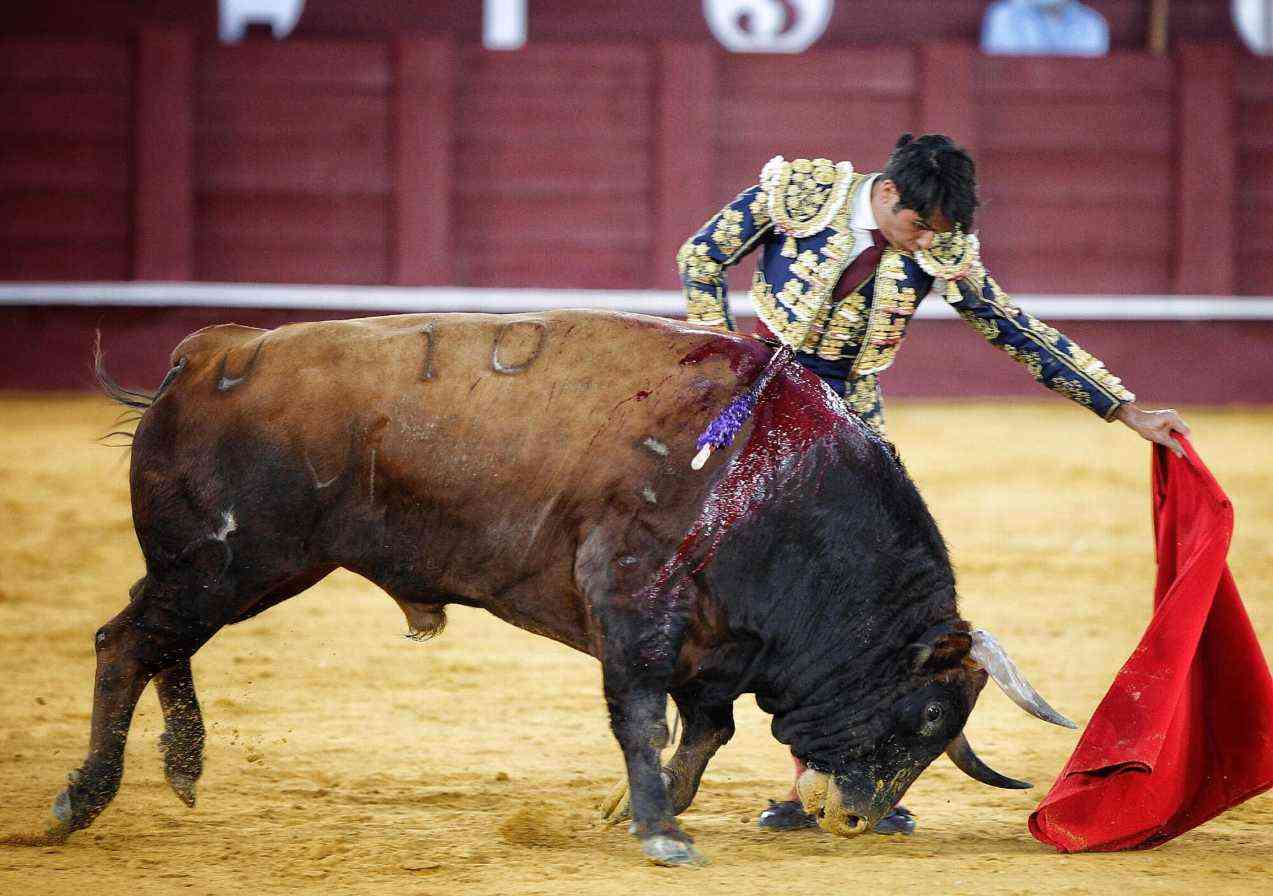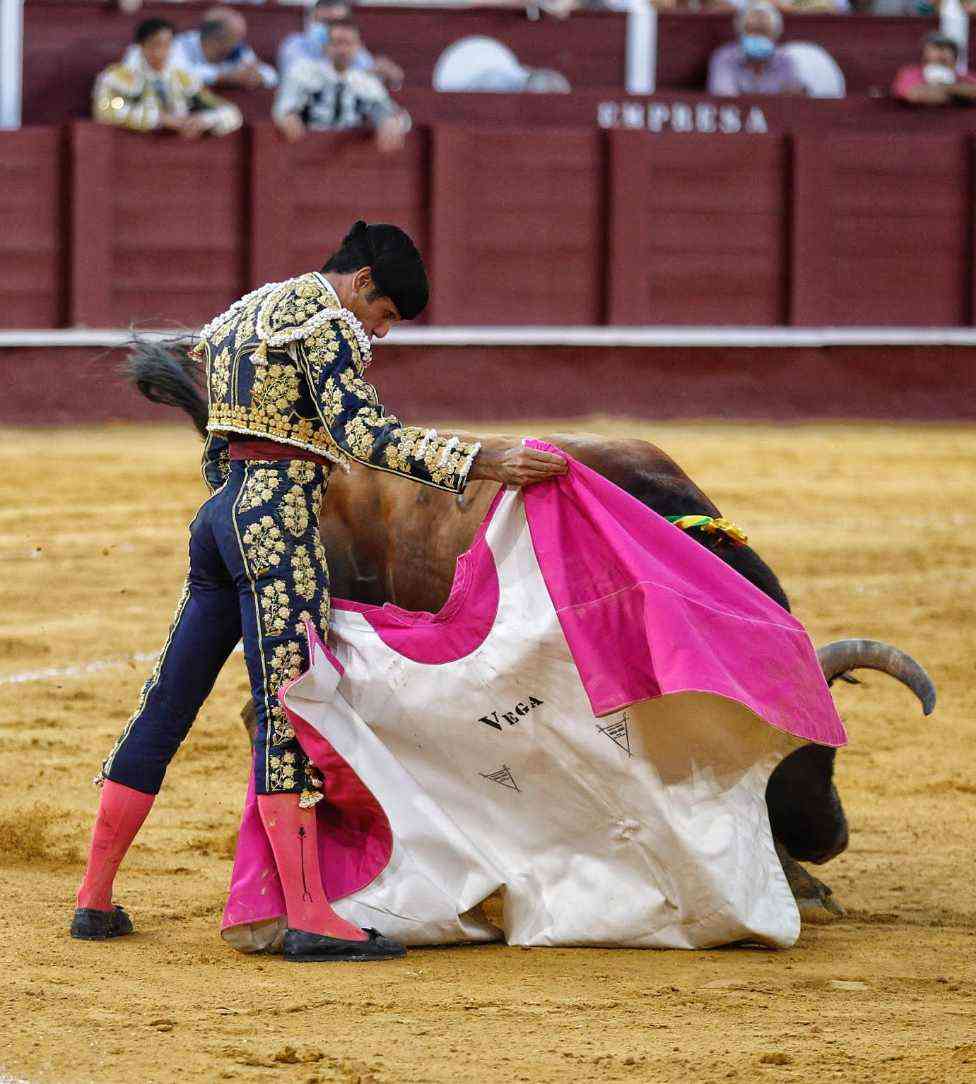 Vega cuajó los naturales más relajados de la tarde. Bella faena del malagueño dándole la distancia y las pausas necesarias al de Daniel Ruiz, primero de su lote. Series con temple, con los pies asentados y con gusto. El susto se lo llevó tras ser volteado por el animal. Se repuso y le pegó varios naturales de gran belleza. Estocada y oreja.