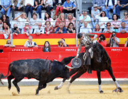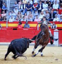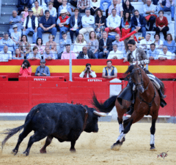 En el último de la tarde, un toro de Benítez Cubero con buen galope, Lea Vicens lo recibió con ‘Guitarra’ parando de manera sensacional al toro y clavando hasta tres rejones de castigo. A lomos de ‘Gacela’ puso banderillas rodando a buen nivel y con ‘Deseado’ también cosechó momentos de interés a pesar de que el toro se vino abajo. Lea lo hizo todo tirando de raza y de oficio. Acertó con el rejón de muerte y paseó las dos orejas.