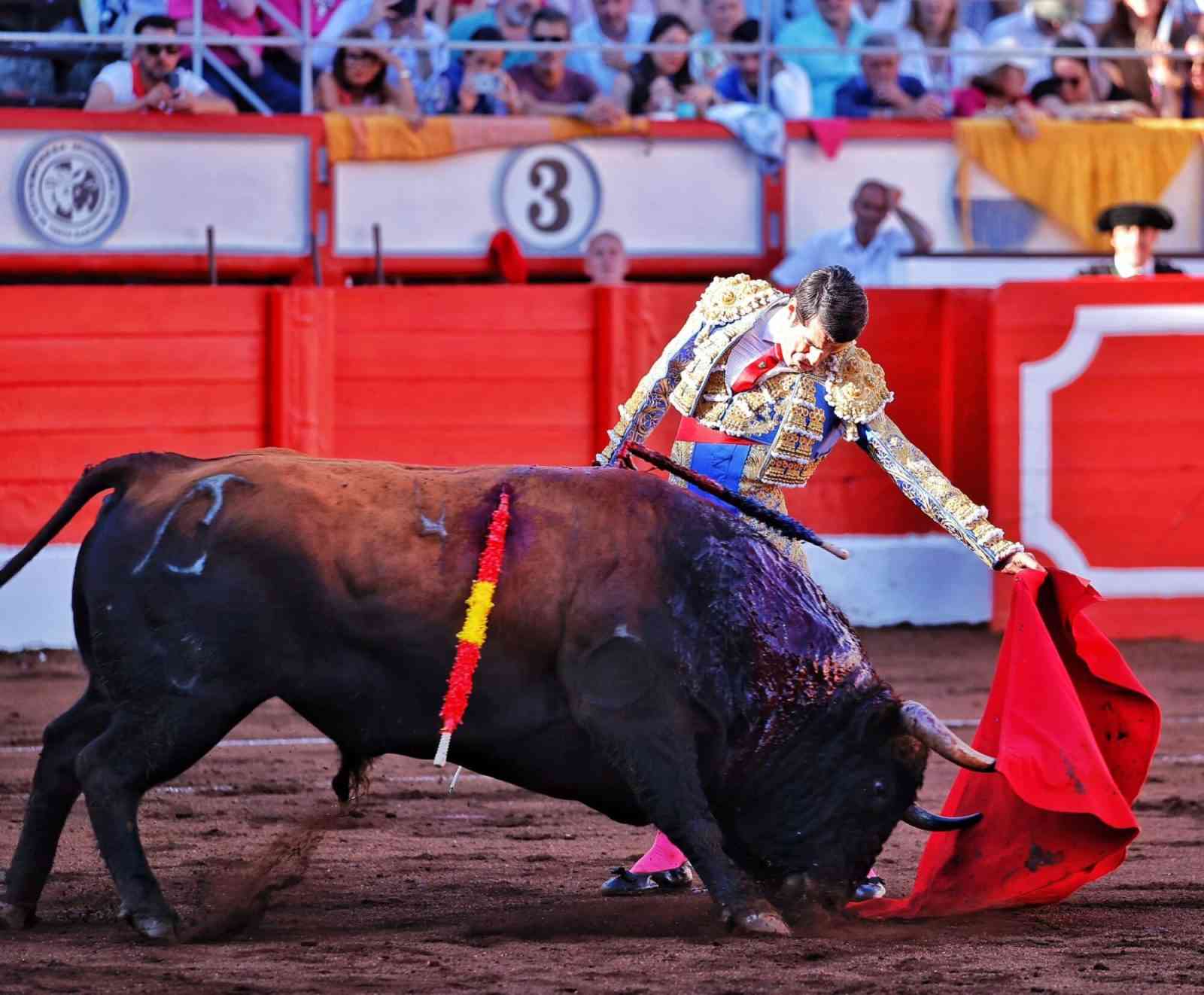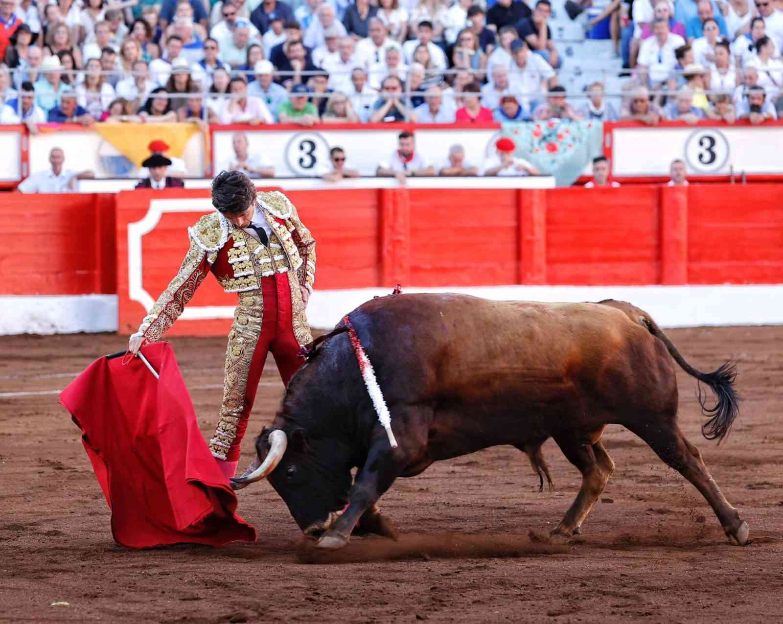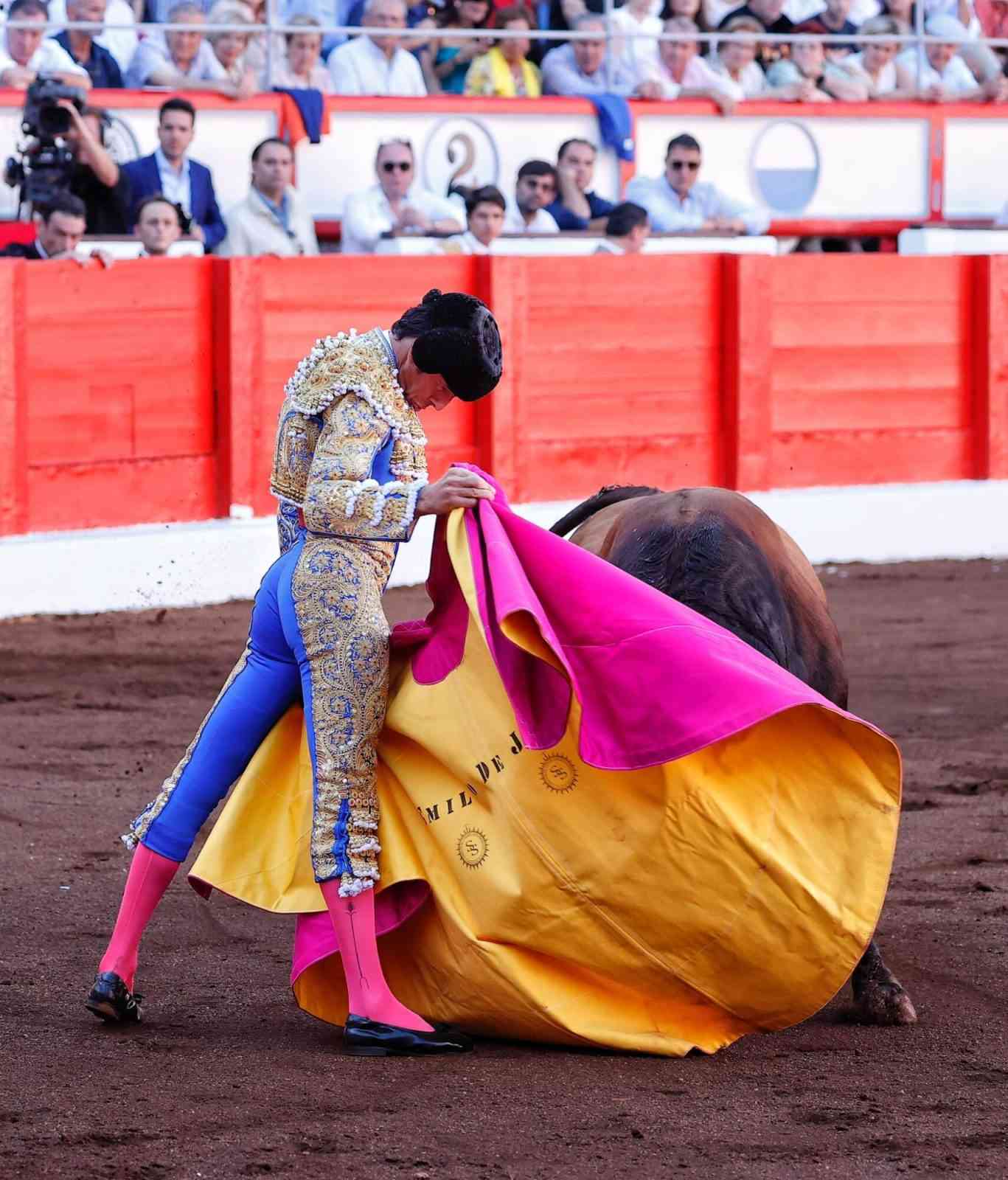 Marín cuajó una gran faena al tercero, al que lanceó con temple con el capote, para luego cuajar una faena sensacional. Una faena que brindó a Morante y donde destacaron las series al natural. Muletados con gran profundidad y muy templados. La gente se entregó con Marín. Estocada y dos orejas de ley.