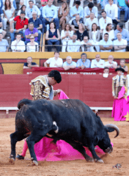 Ginés Marín se las vio con un toro Fermín Bohórquez, noble pero justo de fuerza. Lo que duró fue aprovechado por Marín. Buen quite por gaoneras. En la muleta, el extremeño cuajó buenos derechazos. El toro en una de las series le prendió. Dolorido lo mató y saludó una ovación.