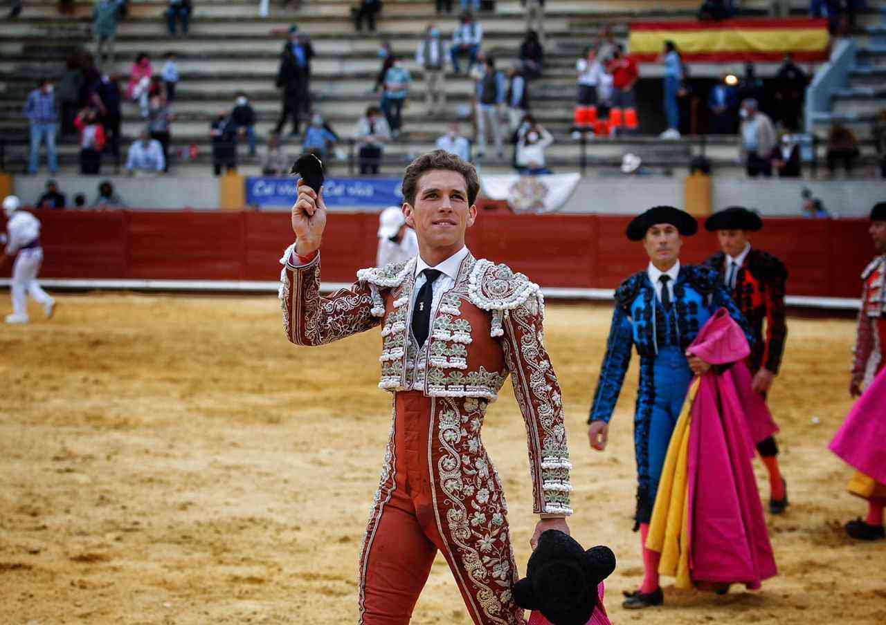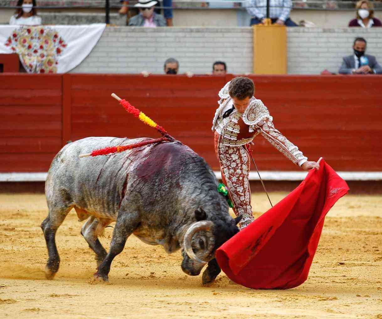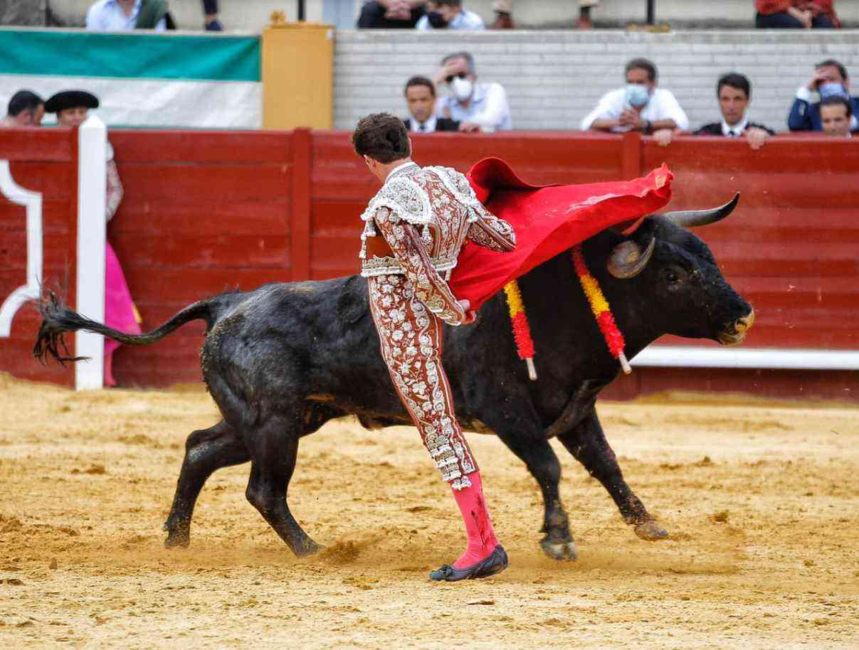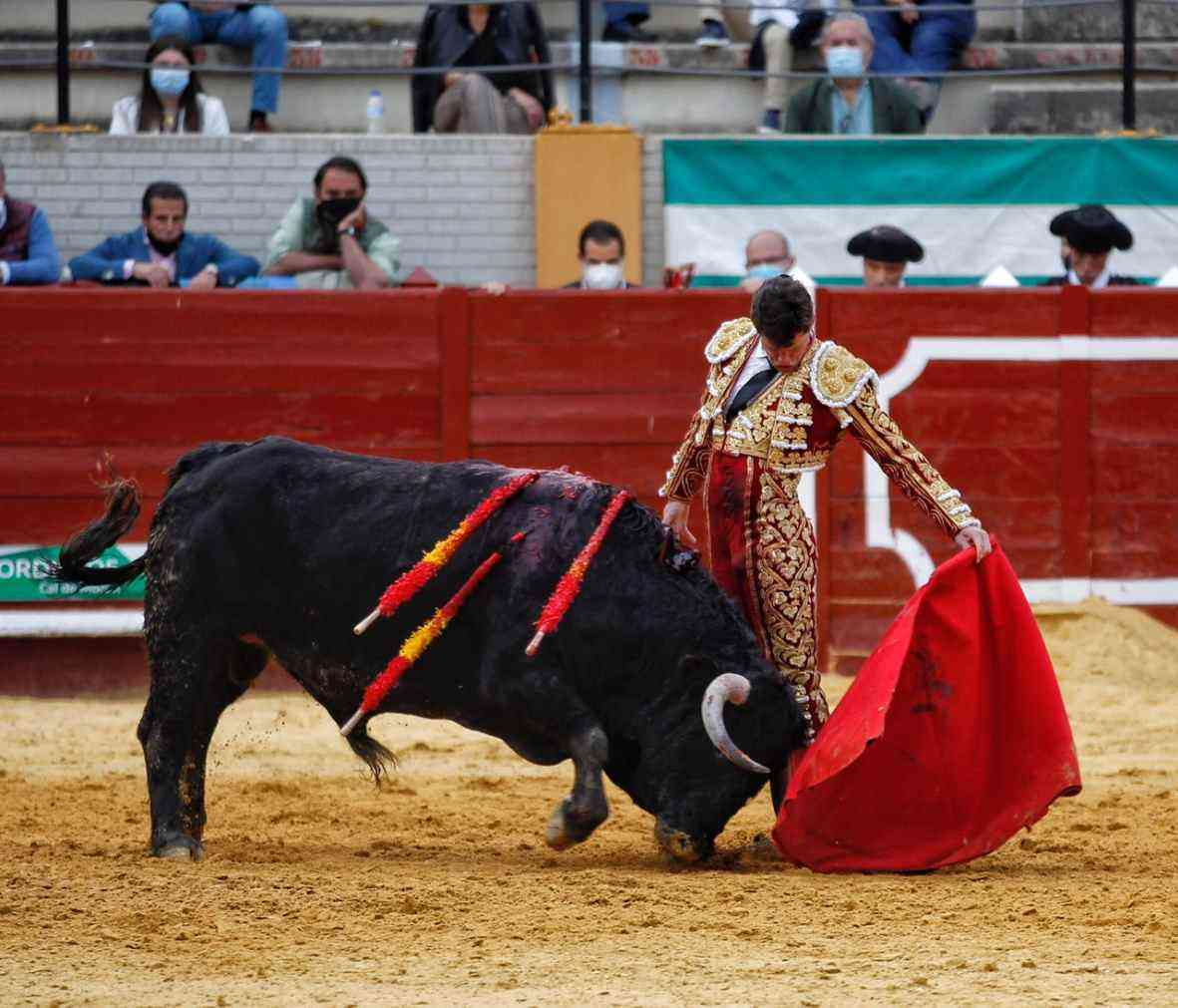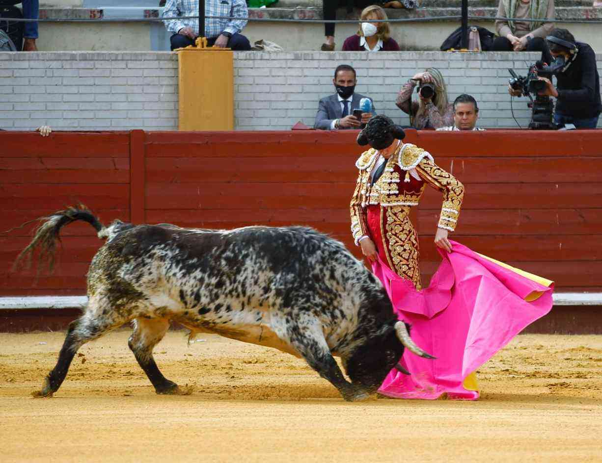 Ginés Marín paseó la oreja del cuarto, un toro de Miura, en una faena basada en toques templados y dejando detalles sobre todo por el pitón izquierdo. Finalizó la faena con bernadinas. Estocada y trofeo.