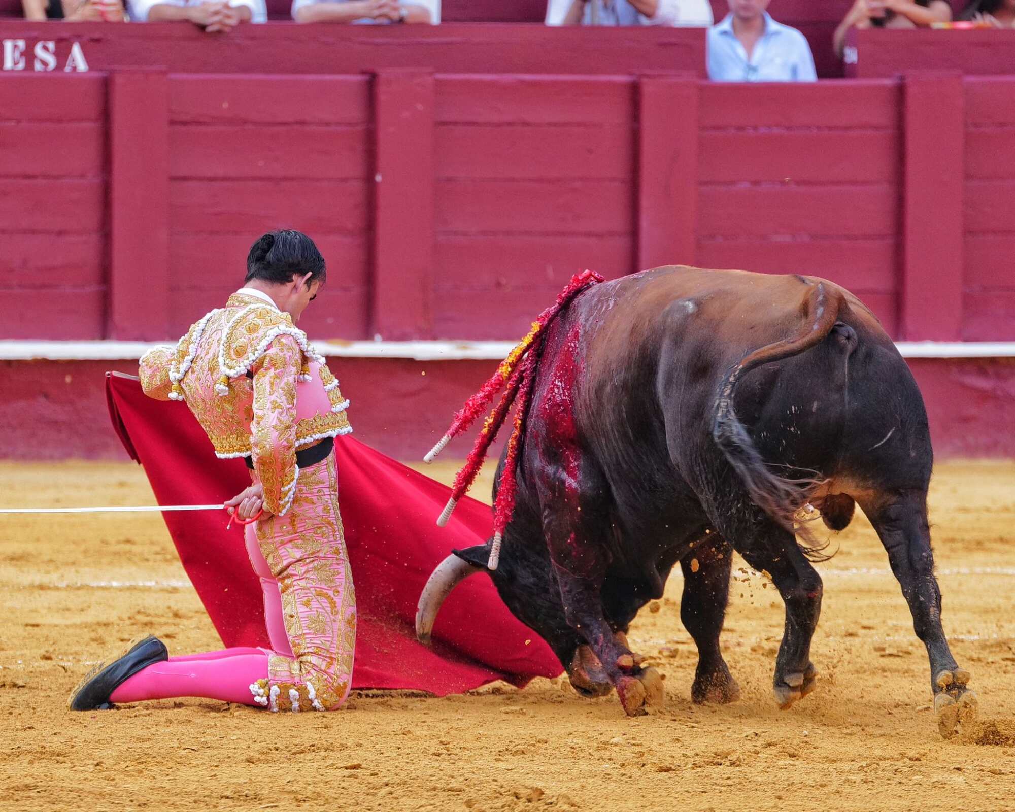 Al tercero lo recibió con el capote rodilla en tierra. Un toro con clase al que toreó con profundidad al natural. Gran faena. Estocada, oreja y petición de la segunda.