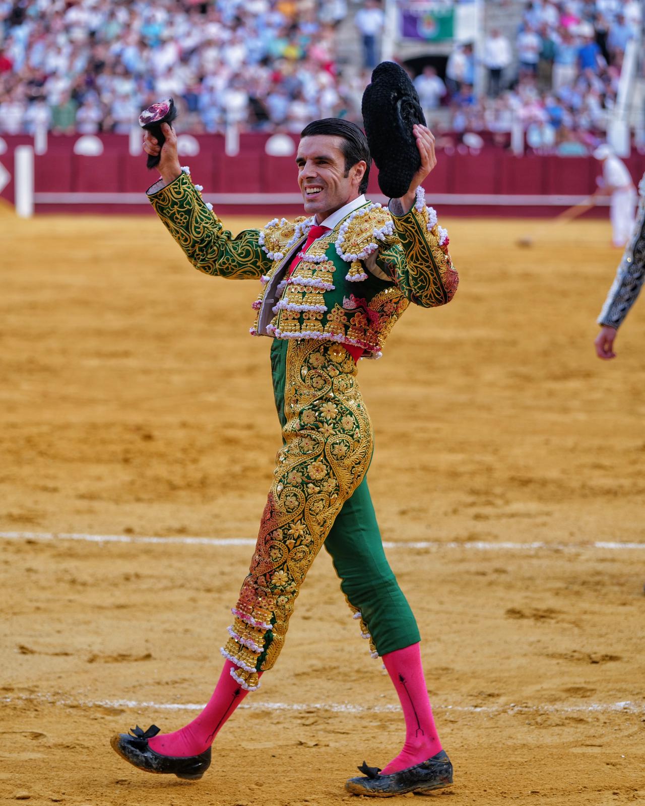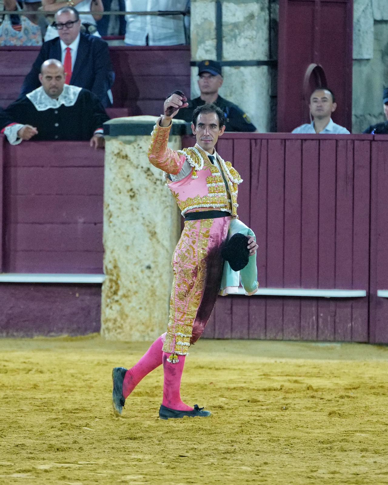 El extremeño paseó la oreja del primero, un toro que se dejó por el derecho. Pitón que aprovechó De Justo aprovechó para cuajar una faena templada. Estocada. Oreja.