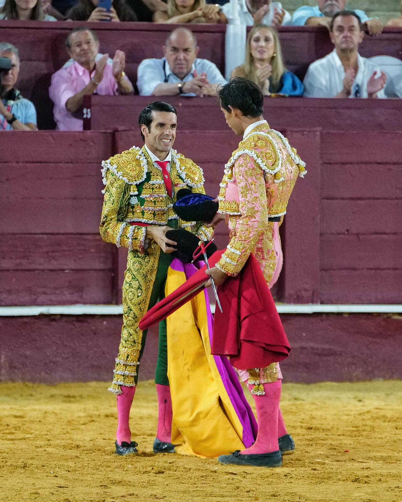 Emilio de Justo ha cuajado una gran tarde en La Malagueta, tres orejas, en el mano a mano con Fortes, que paseó una oreja de una corrida de El Freixo.