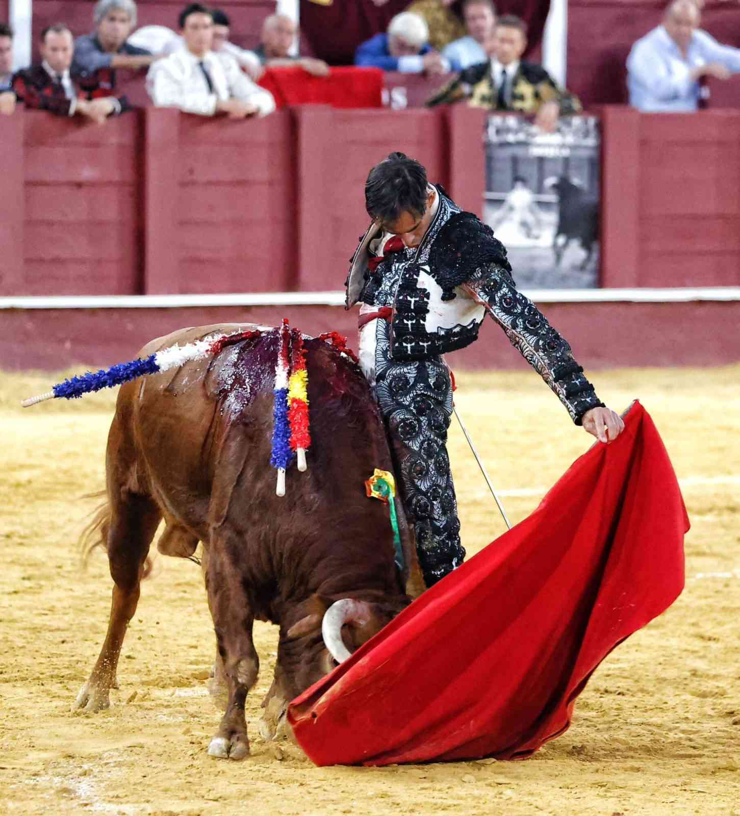 El último toro de la feria, con el hierro de Jandilla, sirvió para ver la dimensión de Roca Rey en una faena que comenzó en el centro del ruedo con pases cambiados. Faena de mando, siempre sometiendo al animal, que terminó rajado. Estocada y oreja.