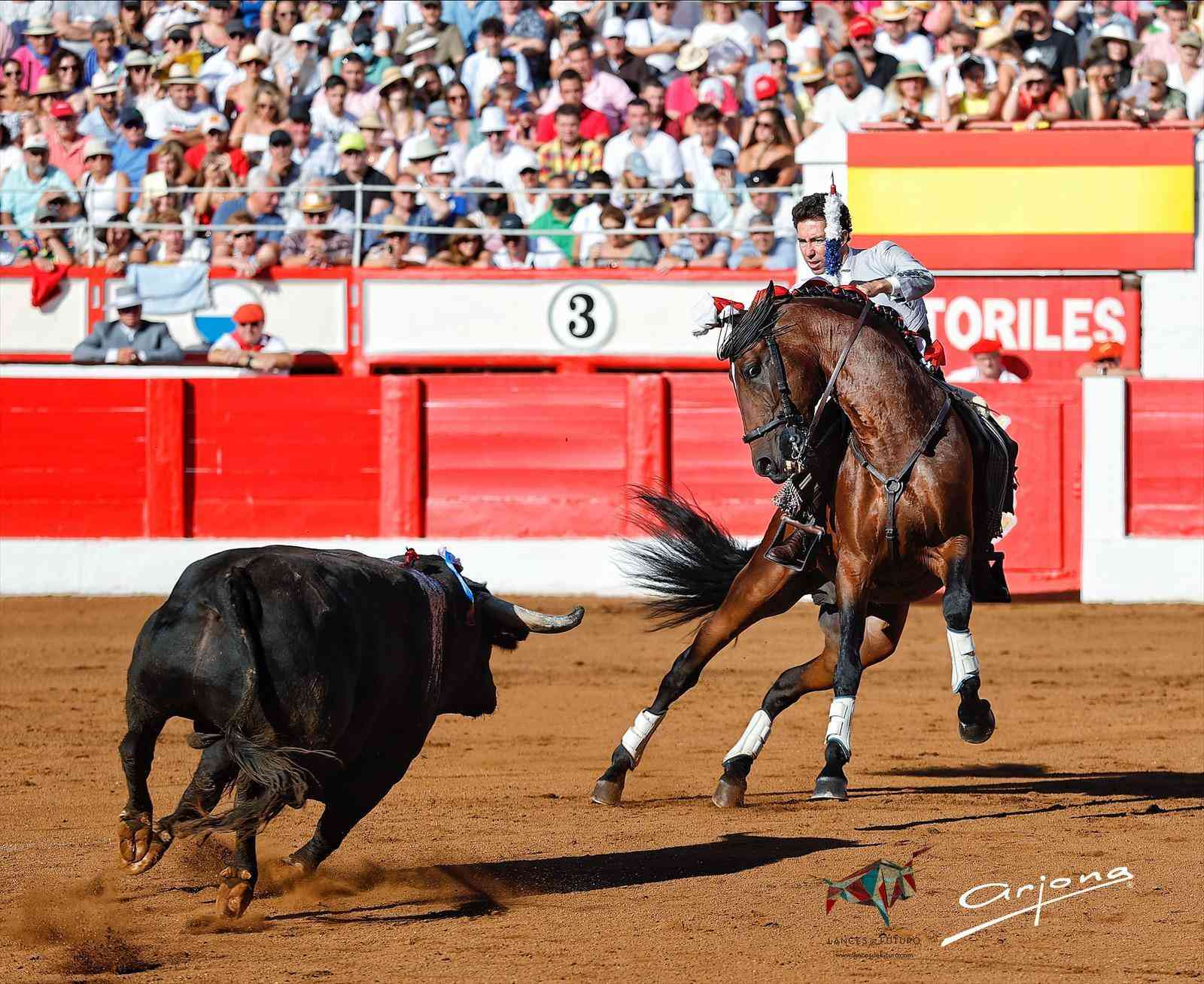 Buen ambiente y entretenido festejo el que se ha vivido esta tarde en la corrida de rejones de la Feria de Santiago de Santander con un triunfador claro como Guillermo Hermoso de Mendoza, que cortó las dos orejas del último de la tarde. Sexta puerta grande de la feria.