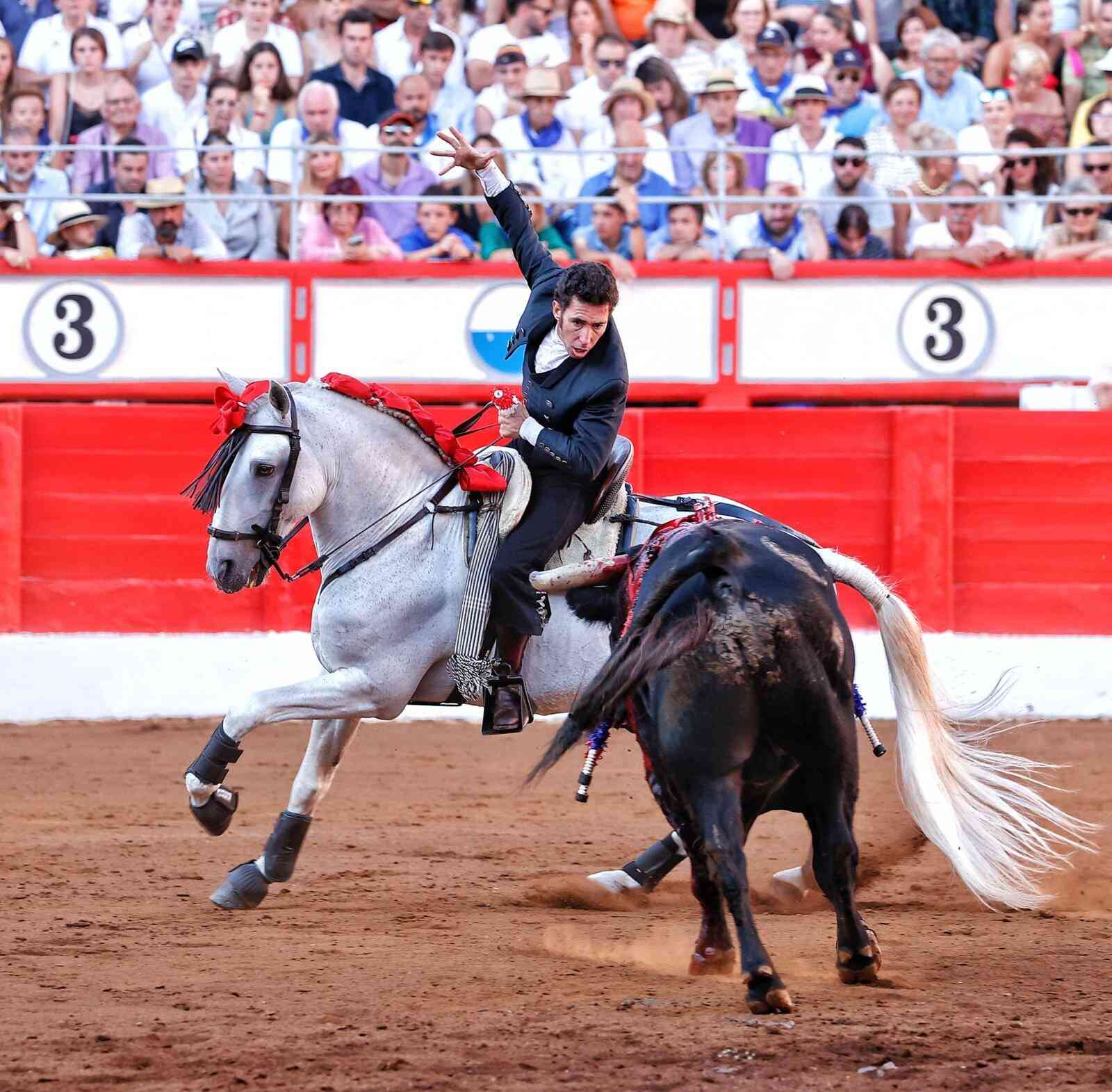Guillermo Hermoso de Mendoza ha sido el triunfador de la última corrida del abono de la Feria de Santiago 2023. Una tarde en la que el rejoneador navarro corto una oreja de cada toro y Lea Vicens cuajó una gran faena en el cuarto, a la que solo se le concedió una oreja. Leonardo no tuvo opciones en su lote de una corrida mansa de El Canario.