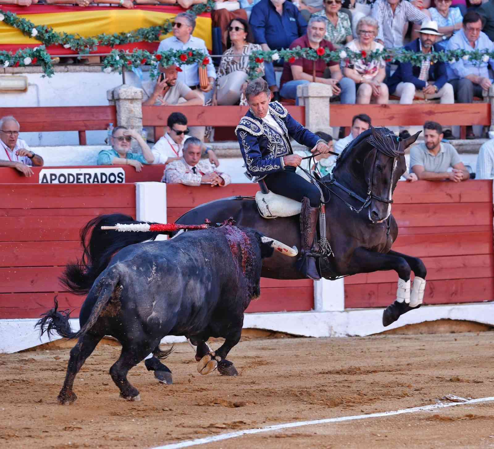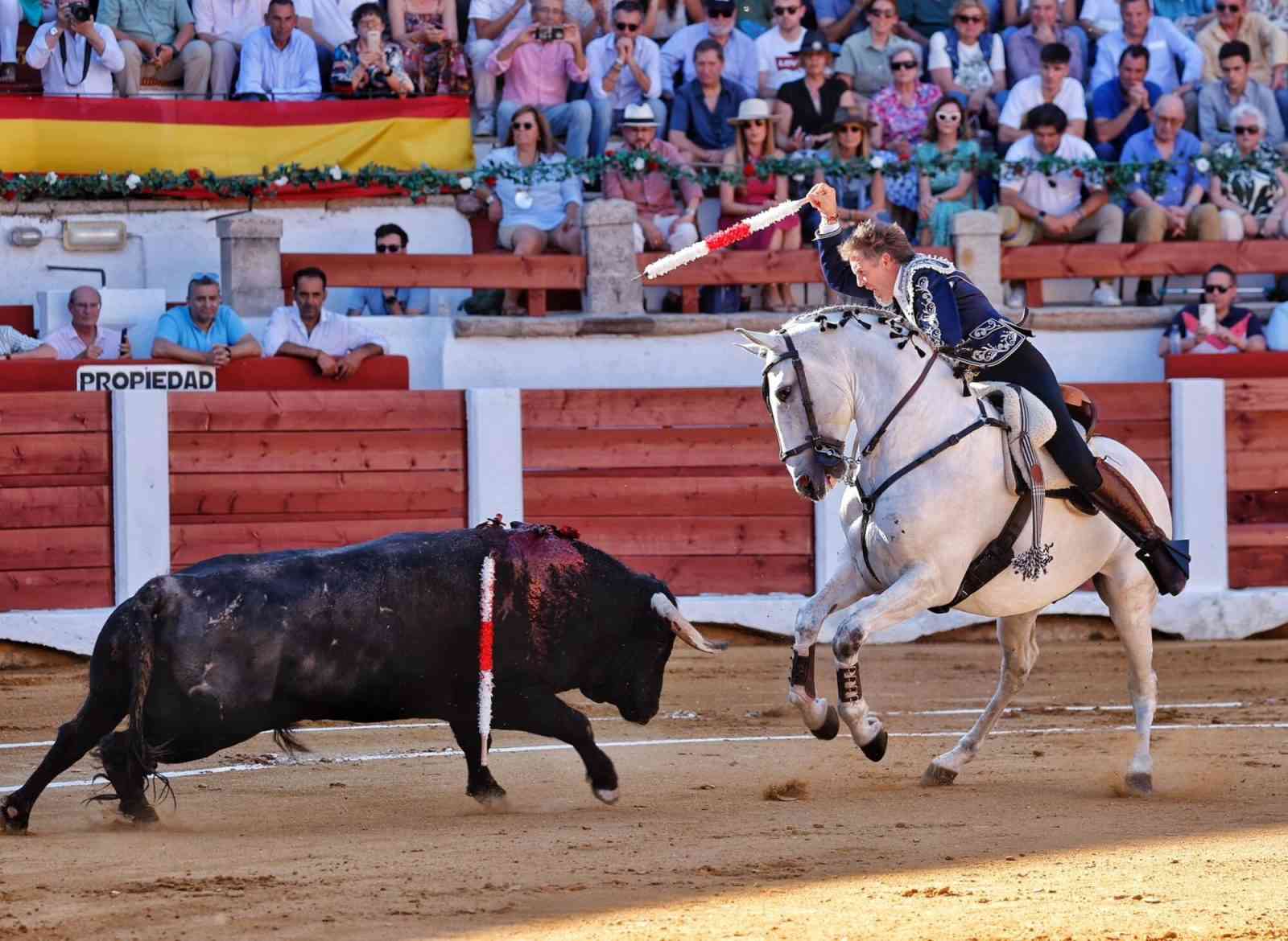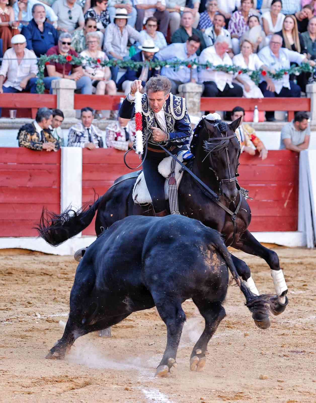 Abrió plaza Hermoso de Mendoza ante un toro soso de Murube, todo lo tuvo que hacer el torero navarro. Buen tercio de banderillas a lomos de ‘Navegante’ y ‘Berlín’. El fallo con el rejón de muerte le privó del trofeo.
