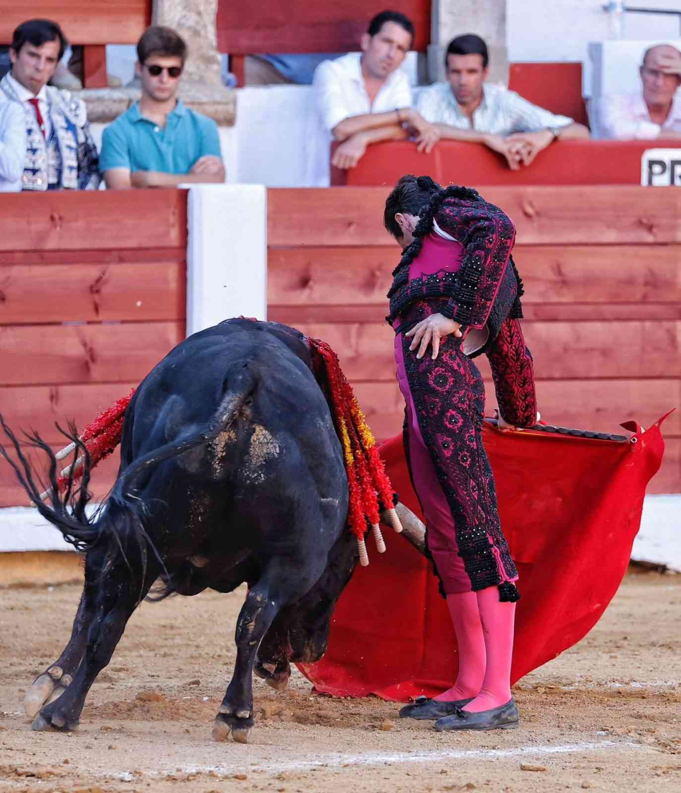 Juan Ortega no tuvo suerte con el tercero de la tarde, un toro sin raza y con el que Ortega solo pudo dejar detalles de su buen toreo con la muleta, todo muy despacio. Estocada. El banderillero Jorge Fuentes sufrió una fuerte voltereta y tuvo que pasar a la enfermería con un gran golpe en la cabeza.Hermoso de Mendoza si que cuajó una gran faena en el cuarto. Sensacional en banderillas a lomos de ‘Berlín’ y de ‘Basajaun’. Todo muy templado. El público se entregó con el toreo a caballo con ‘Malvec’, donde destacaron las piruetas. Público en pie. Gran nivel con ‘Generoso’ en las cortas. Dos orejas.