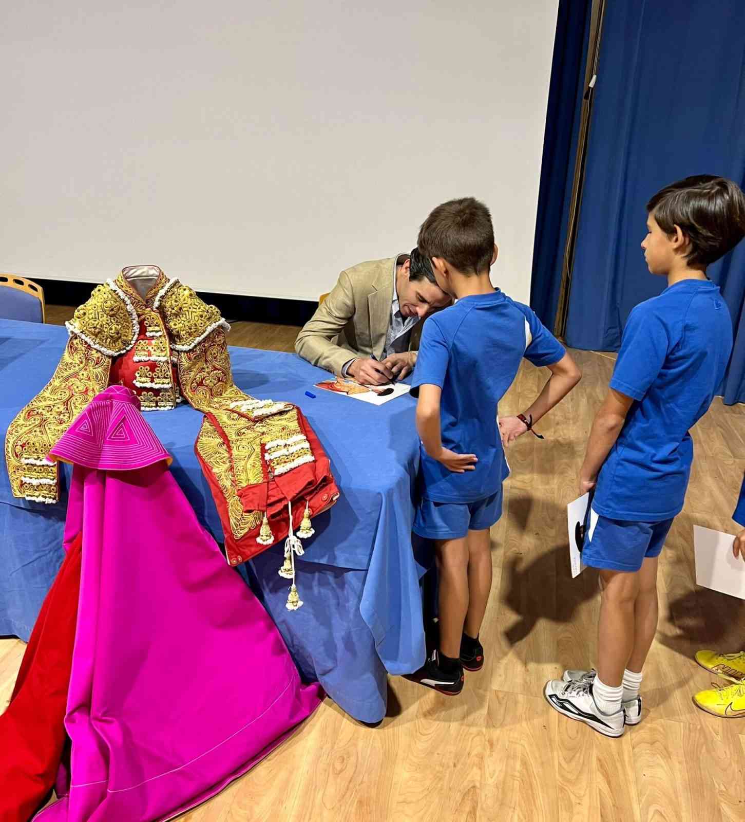 El matador de toros sevillano conversó con los chavales, entre otras cosas, de su primer contacto con la tauromaquia. El matador aprovechó para transmitirles lo importante de las primeras experiencias. A juicio del matador sevillano “nos marcan para siempre”. Y les trasladó la importancia de valores como el esfuerzo y la paciencia. “Los resultados llegan si tienes una prioridad a la que entregar tu vida.