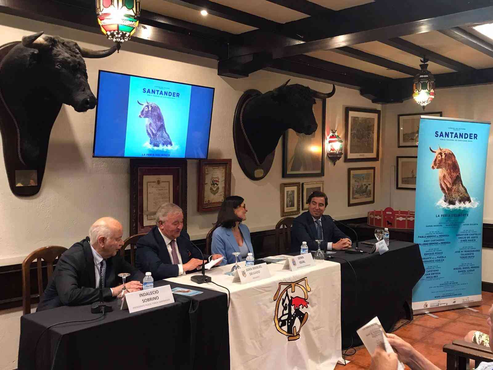 La alcaldesa de Santander, Gema Igual, presentó ayer en el Club Taurino de Bilbao el cartel de la Feria de Santiago 2024, que se celebrará en la plaza de Cuatro Caminos del 20 al 27 de julio.