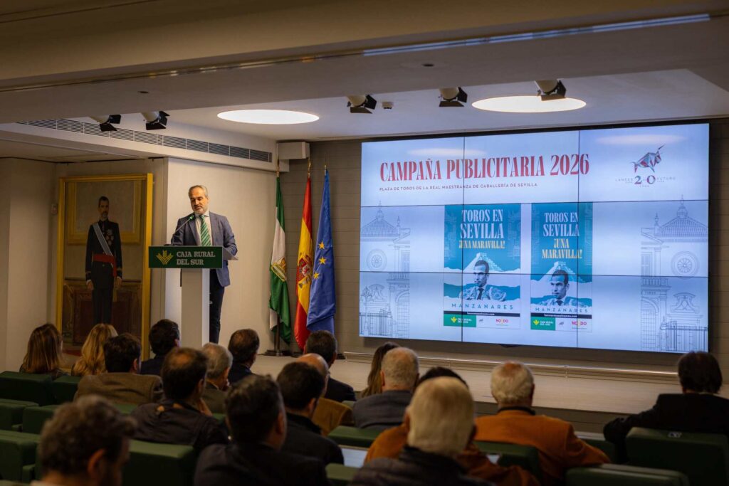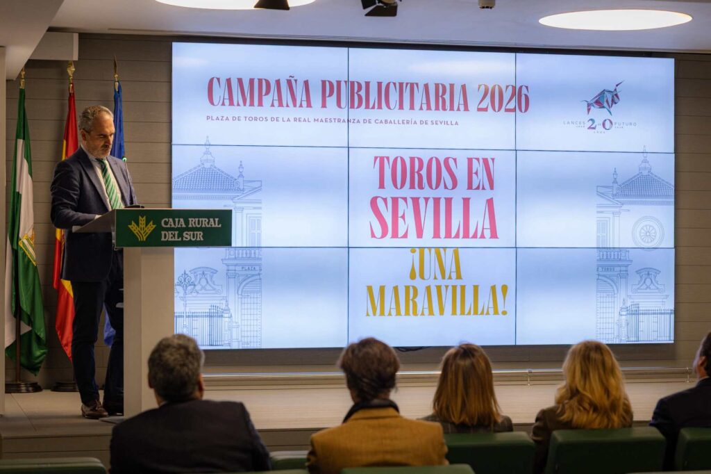 Lances de Futuro ha presentado este lunes en Sevilla la campaña publicitaria y el plan de medios para la temporada taurina 2026 en la Real Maestranza de Caballería. El acto, celebrado en la sede de Caja Rural del Sur, ha contado con la participación de su presidente, José Luis García-Palacios; el empresario de Lances de Futuro, José María Garzón; y el director de Comunicación de la empresa, José Manuel Laza.