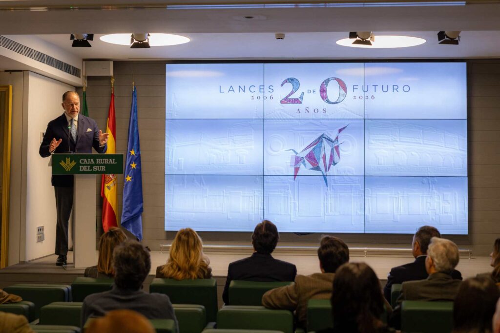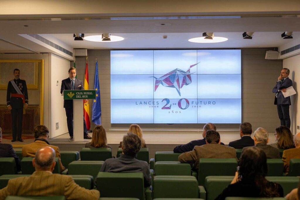 Durante la bienvenida, García-Palacios agradeció la elección de Caja Rural del Sur como espacio para dar a conocer la primera campaña de Lances de Futuro en Sevilla, destacando el valor cultural y económico que la tauromaquia aporta a la ciudad y la apuesta de esta entidad