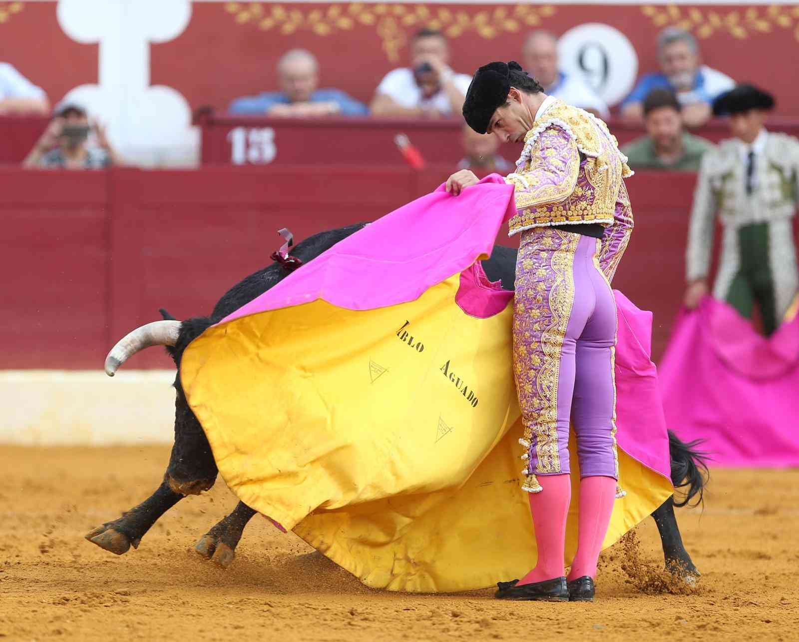 Otros dos trofeos paseó en el sexto. El toro de El Pilar salió con genio, pero en manos de Aguado templó las embestidas con la muleta. Faena cargada también de detalles, pasajes por el derecho de gran calado. Estocada.