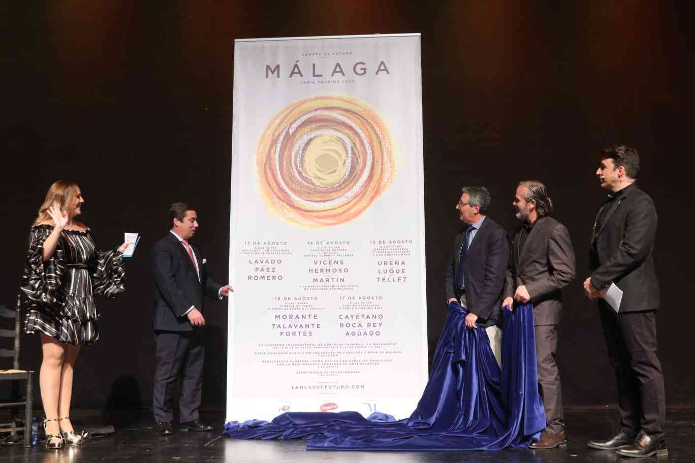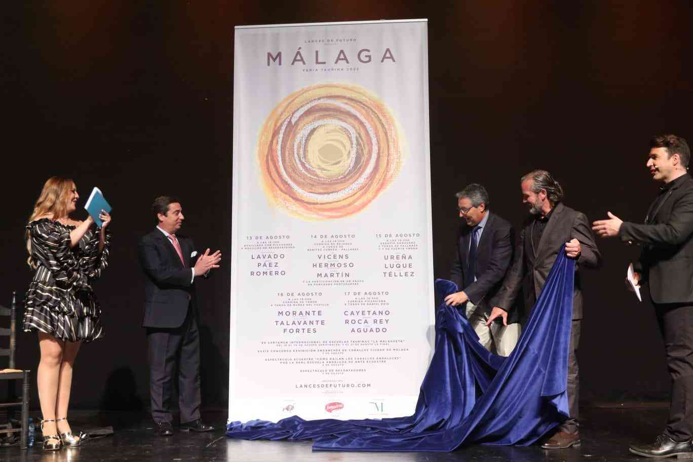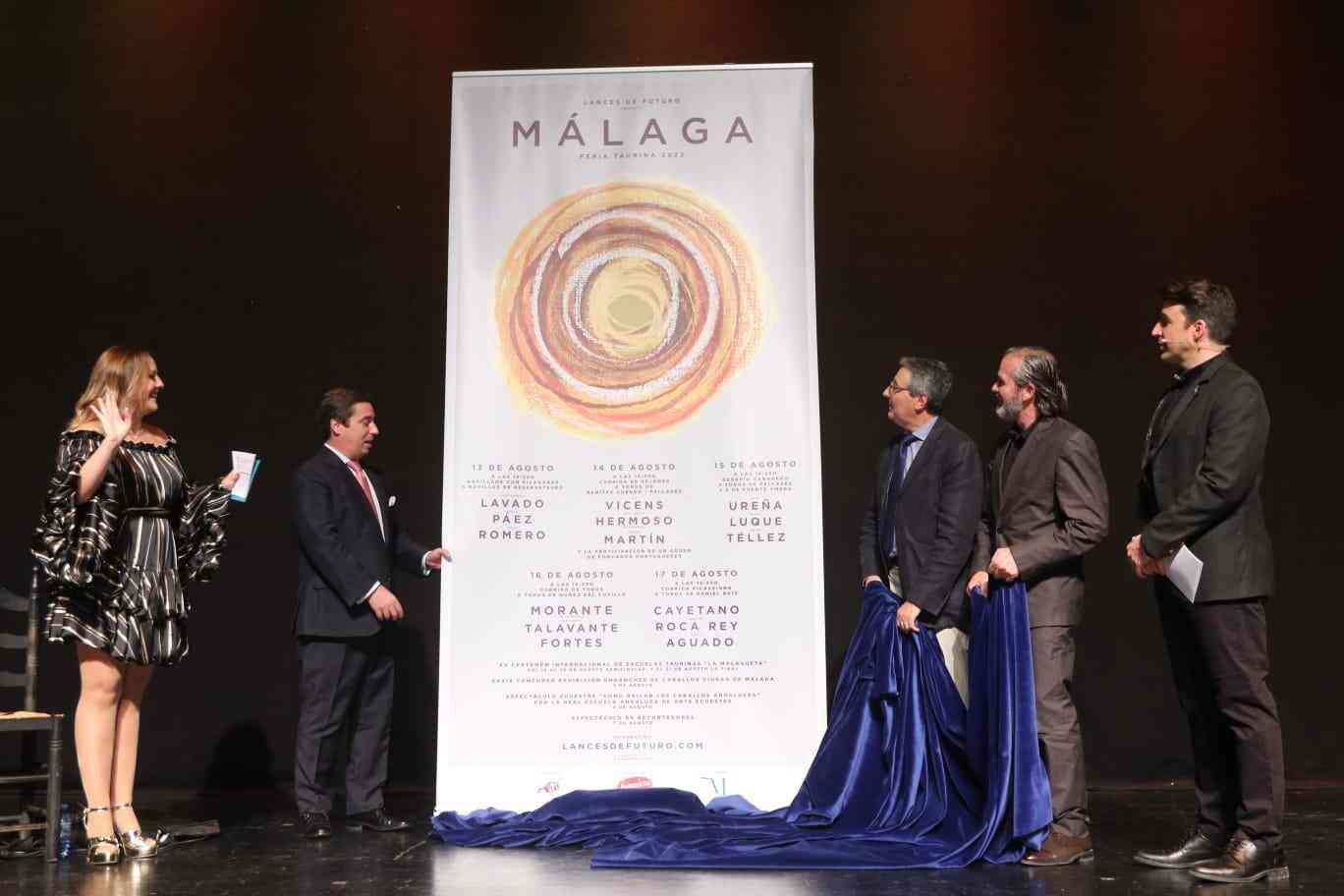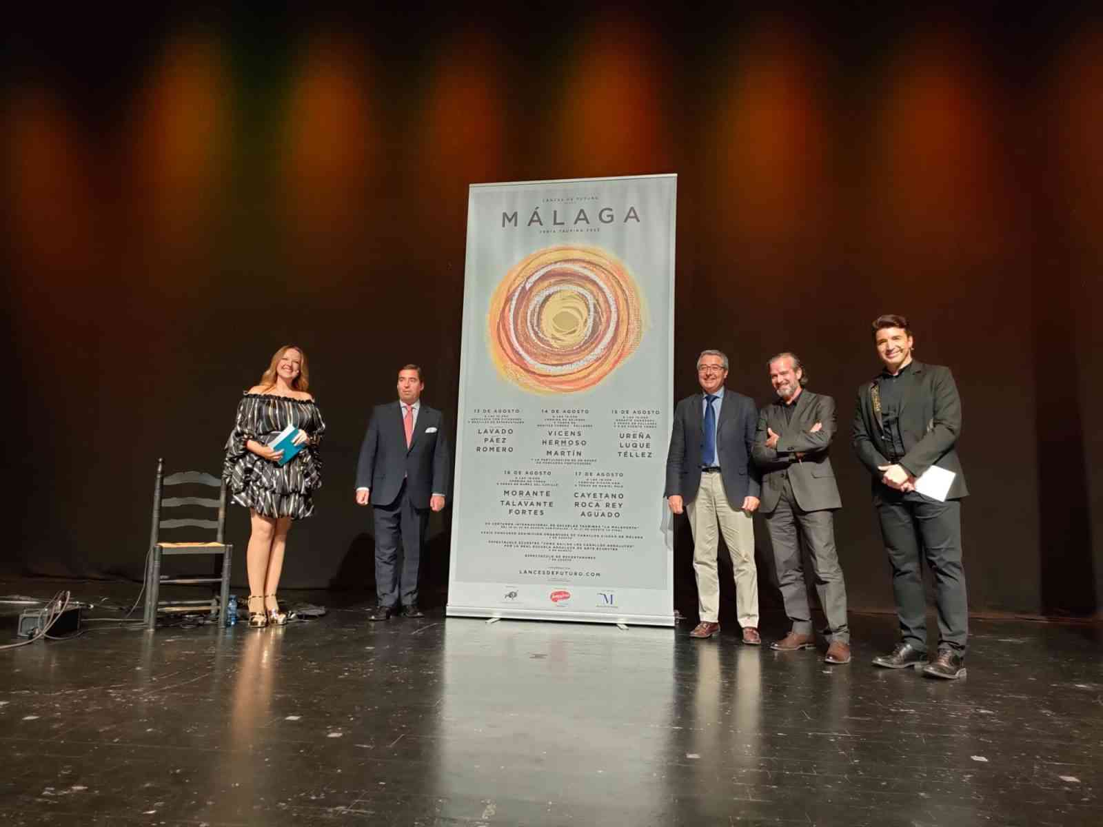 Los carteles de la feria taurina de Málaga, que se celebrará entre el 13 y el 21 de agosto, han sido presentados esta tarde en una brillante y espectacular gala en el auditorio Edgar Neville por el presidente de la Diputación, Francisco Salado, y el gerente de Lances de Futuro, S. L., José María Garzón.