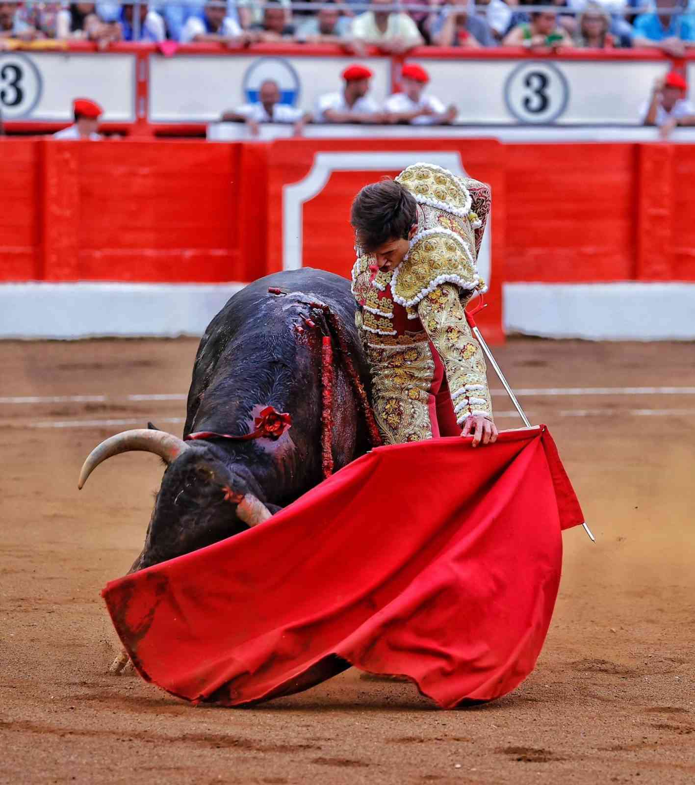 Salió de la enfermería Marco Pérez a matar el quinto, un castaño de Casasola al que le cuajó varias verónicas con temple. Pérez sacó su raza y sus ganas de ser figura. Lo demostró en esta faena, cargada de épica, al ser cogido de nuevo, sin consecuencias. Derechazos encajados, componiendo, series donde el público se entregó. Estocada casi entera, tardó en caer. Oreja.