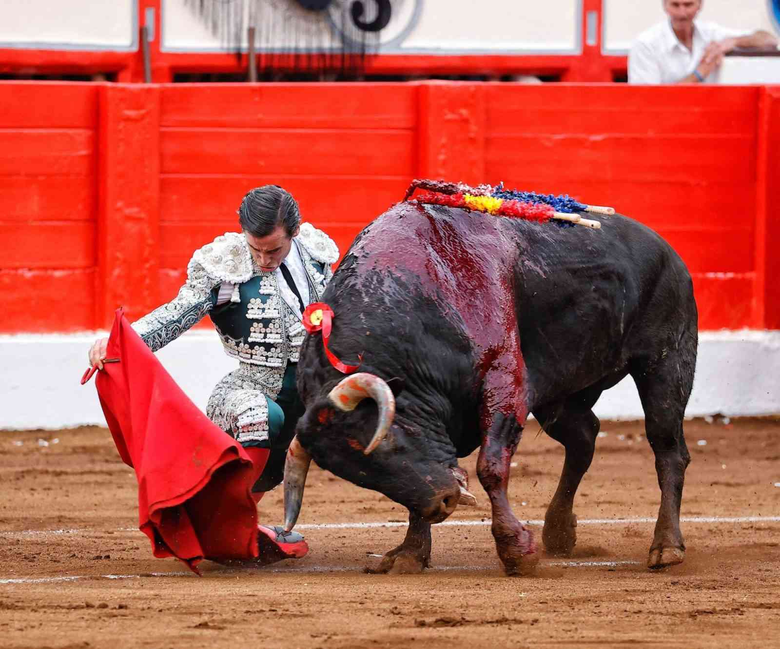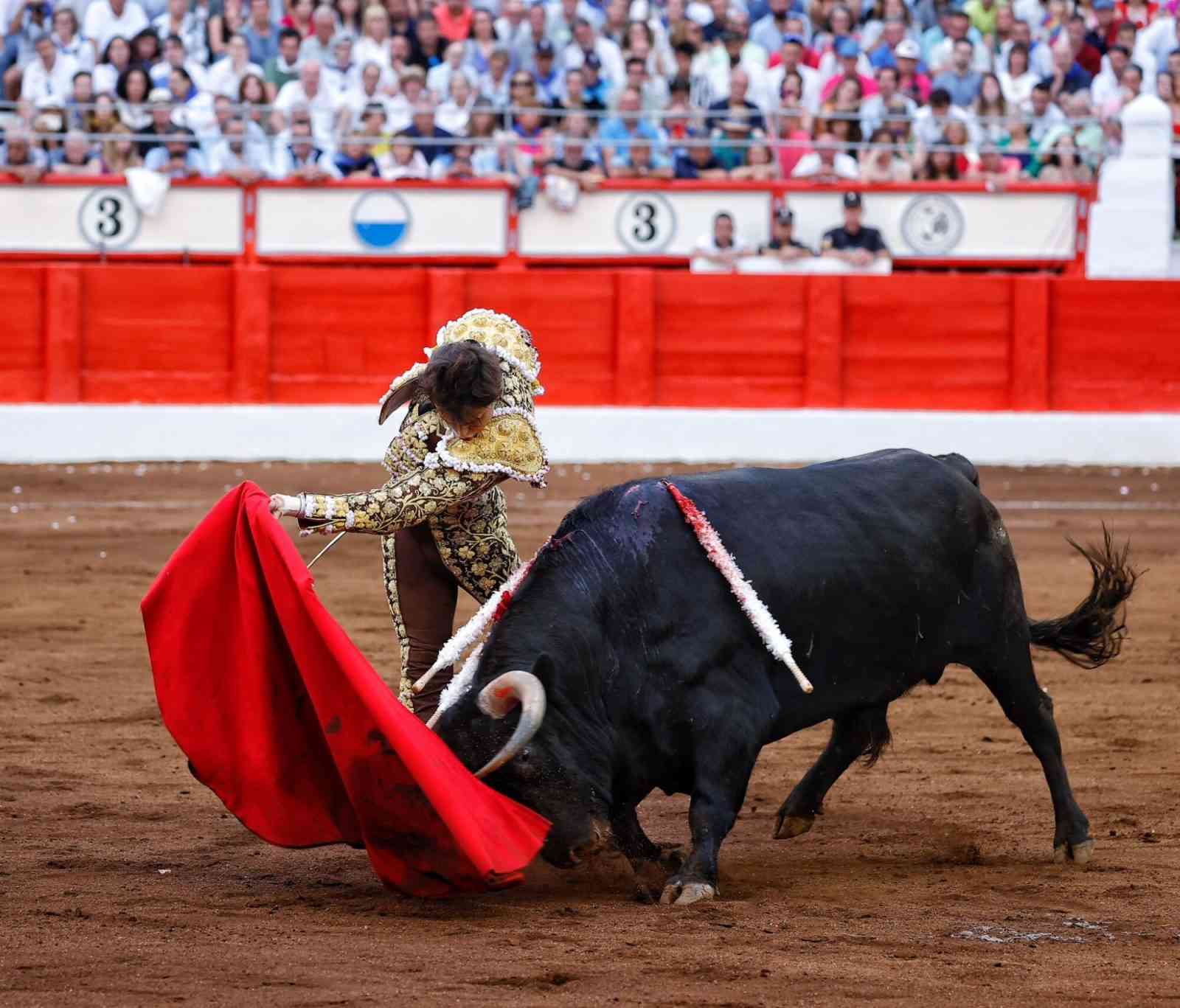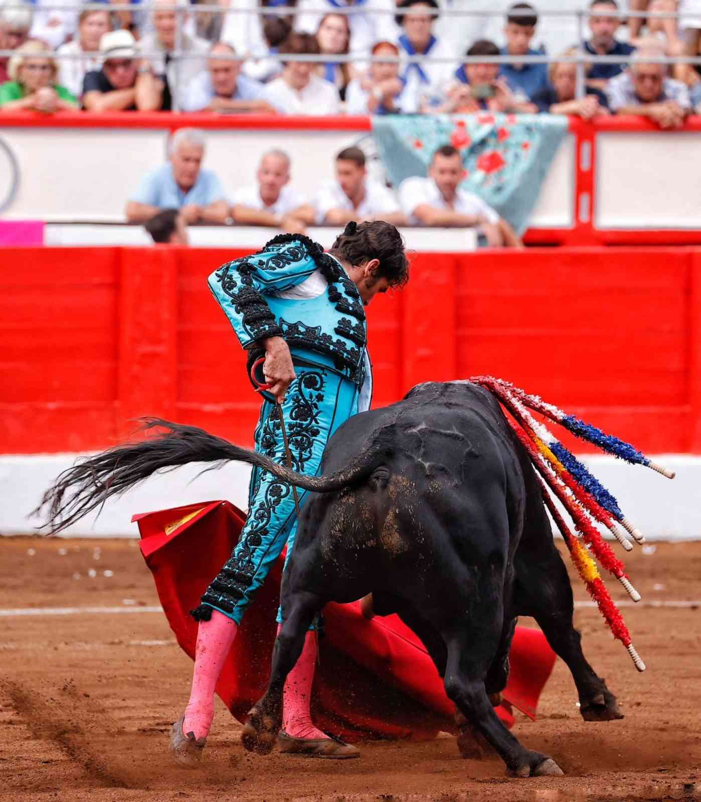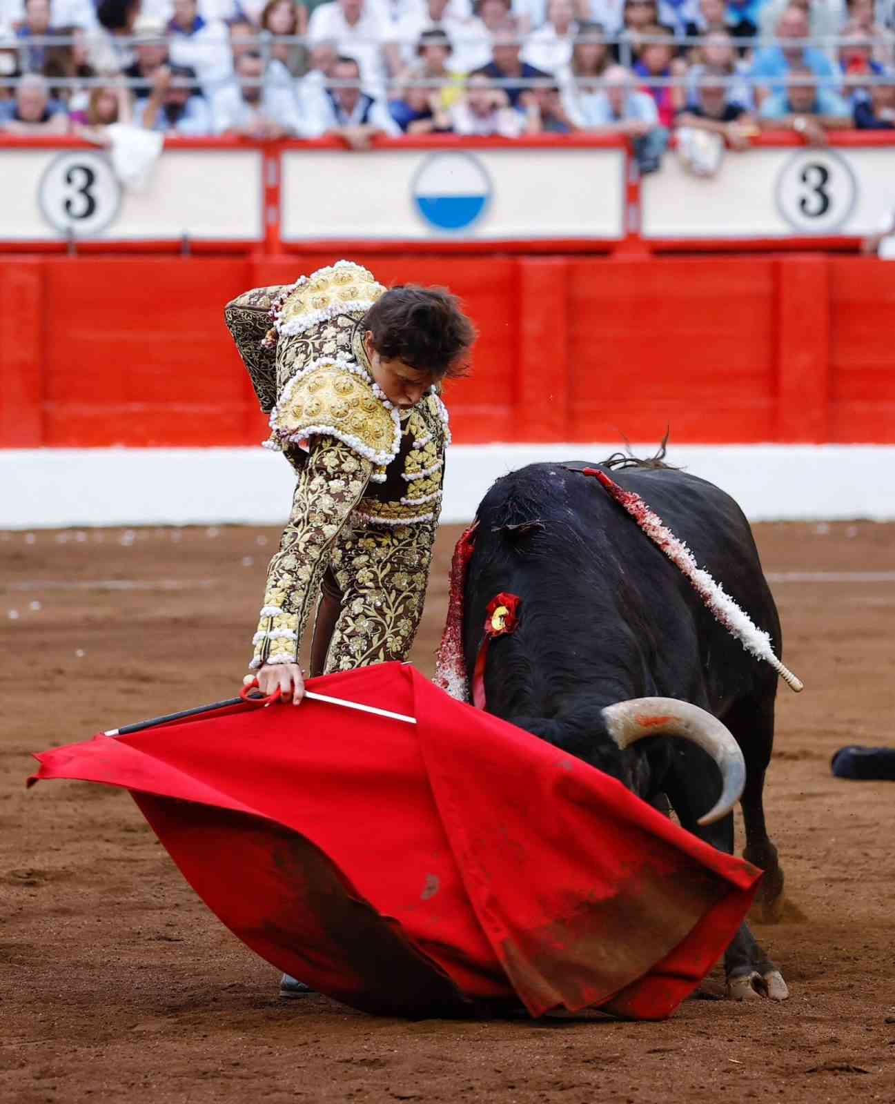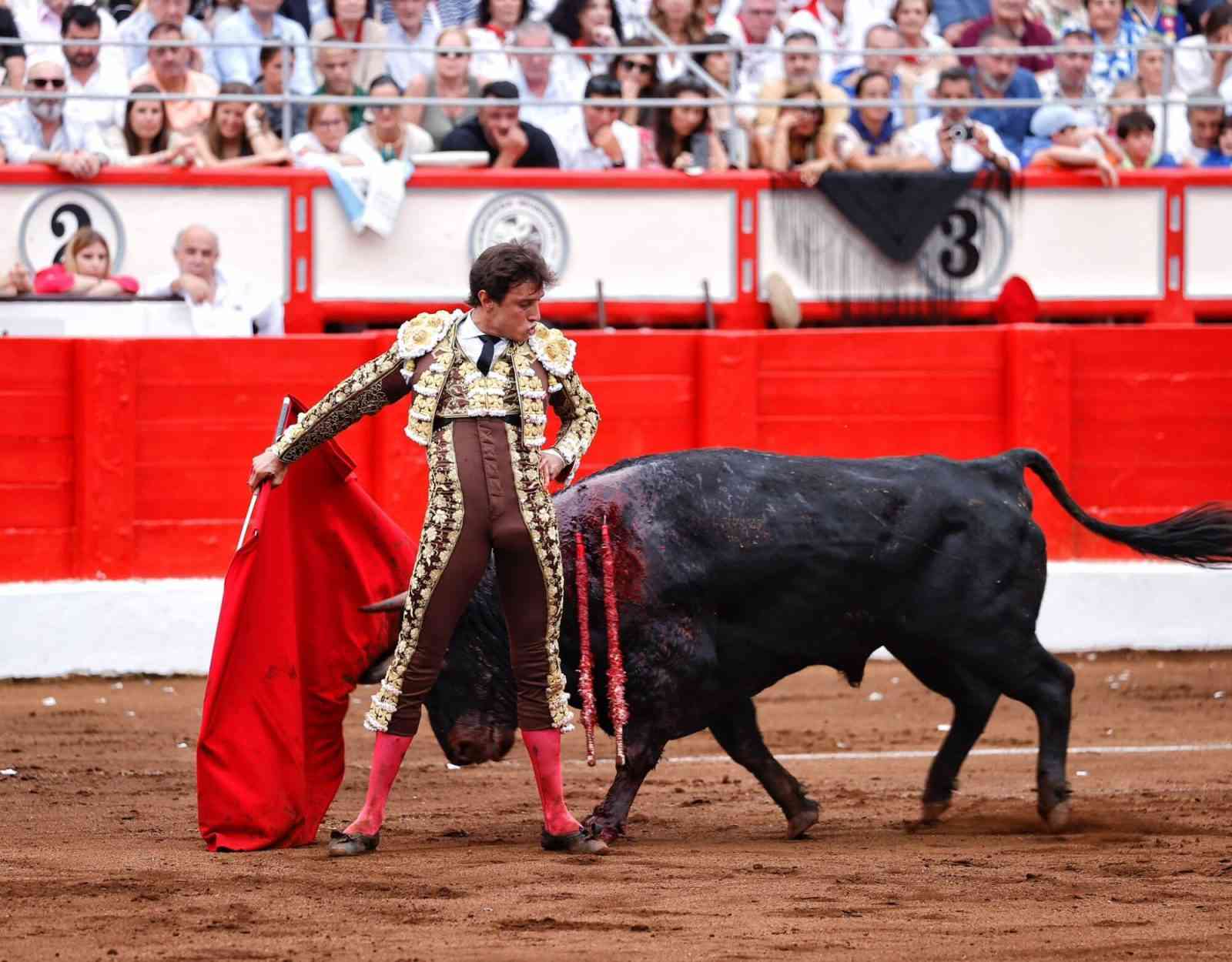 Juan Ortega cuajó una faena cargada de estética y temple. Algunos derechazos fueron a cámara lenta. Hubo una serie al natural profunda que llegó a los tendidos. Estocada. Sorprendentemente el presidente no le dio la oreja que pidió de forma mayoritaria el público. Bronca al presidente.