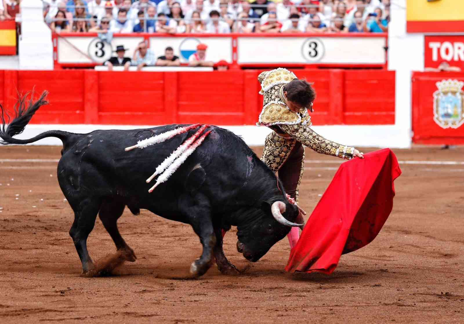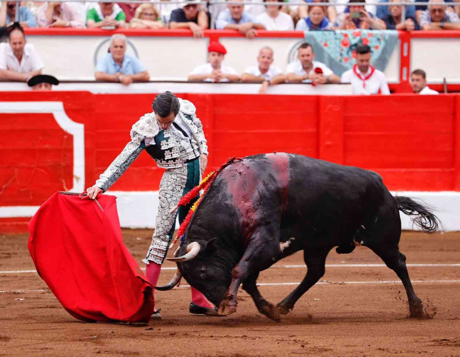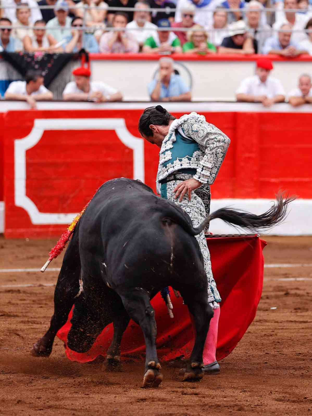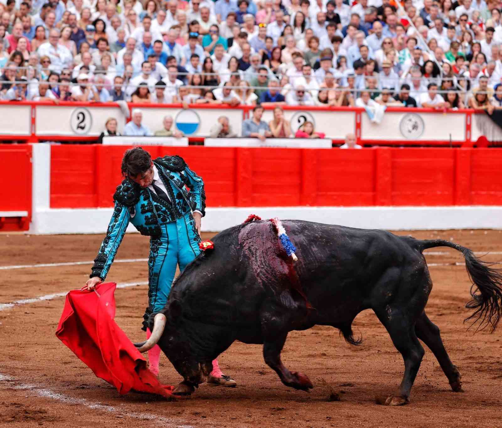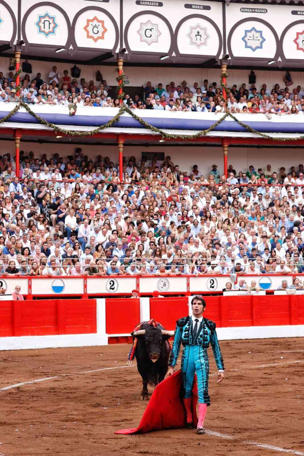 Juan Ortega cuajó una faena cargada de estética y temple. Algunos derechazos fueron a cámara lenta. Hubo una serie al natural profunda que llegó a los tendidos. Estocada. Sorprendentemente el presidente no le dio la oreja que pidió de forma mayoritaria el público. Bronca al presidente.