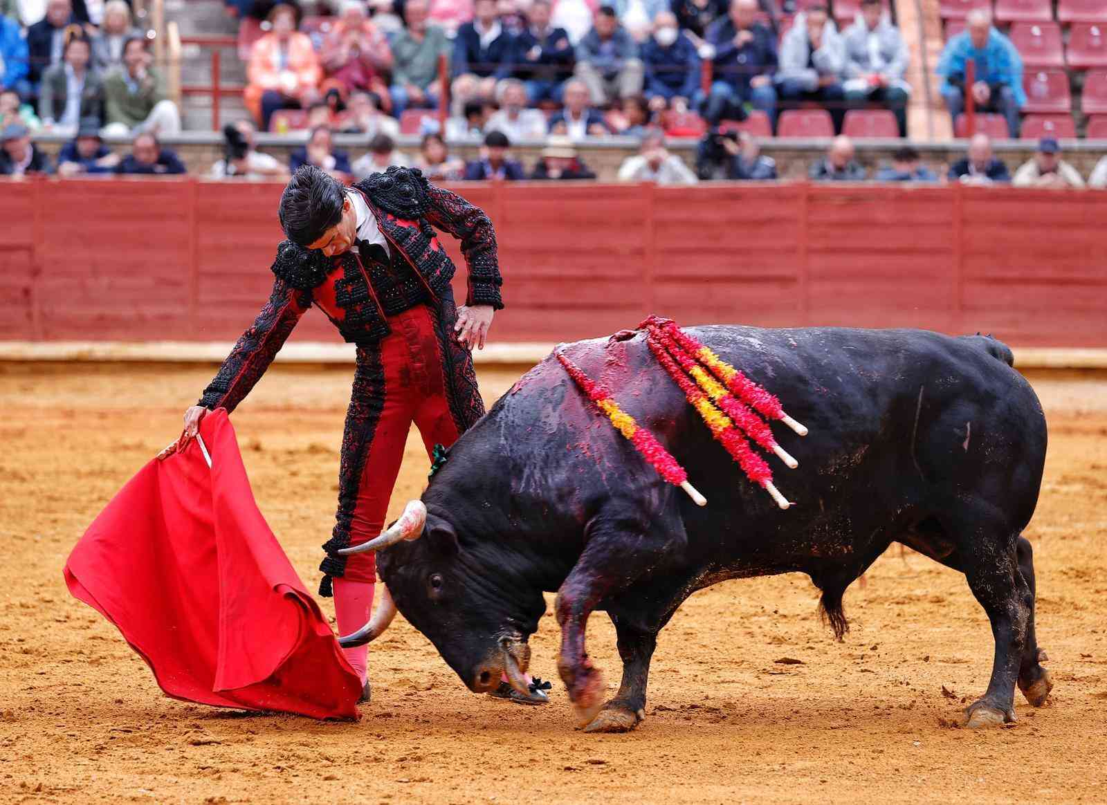 Finito de Córdoba a su primero lo recibió por verónicas hasta los medios rematando la serie con una gran media. Un toro justo de fuerzas con el que el diestro cordobés firmó una faena con pasajes de mucho temple por el derecho. Un trasteo medido y con la muleta a media altura. La espada le privó de pasear una oreja.