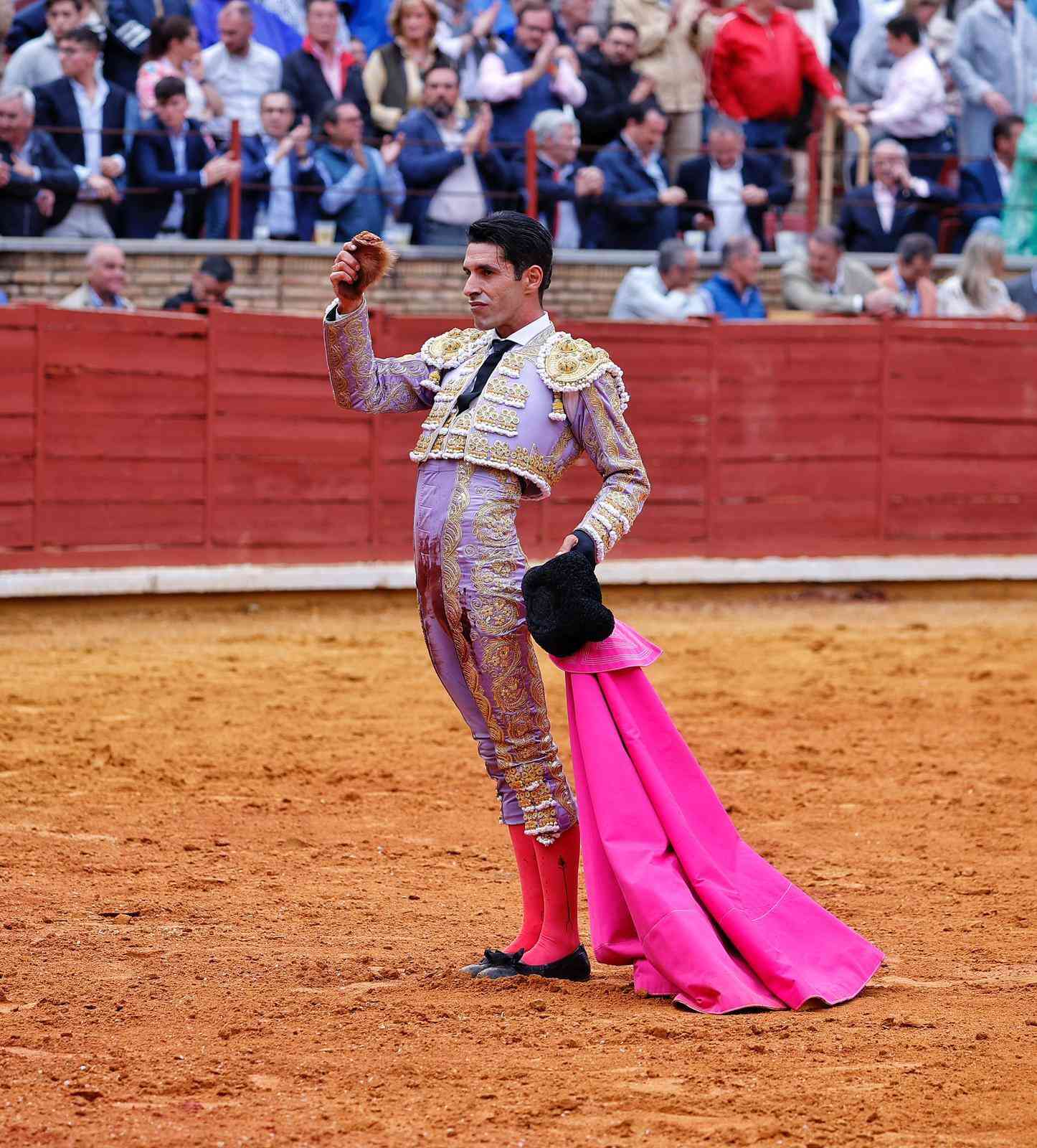 Talavante paseó la oreja del segundo de la tarde, un animal que tuvo nobleza y transmisión y al que el diestro extremeño enjaretó unas verónicas templadas de recibo. Buen quite de Aguado por chicuelinas.