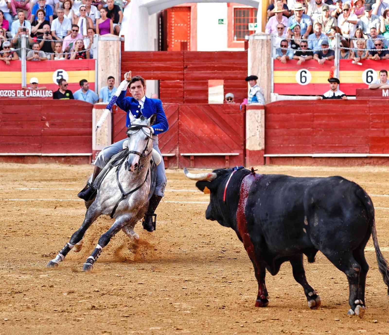 Hermoso de Mendoza paseó la oreja del cuarto en una faena emocionante. El navarro demostró oficio y poder en banderillas a lomos de Orfeo. Remató con un rejón de muerte y descabello.