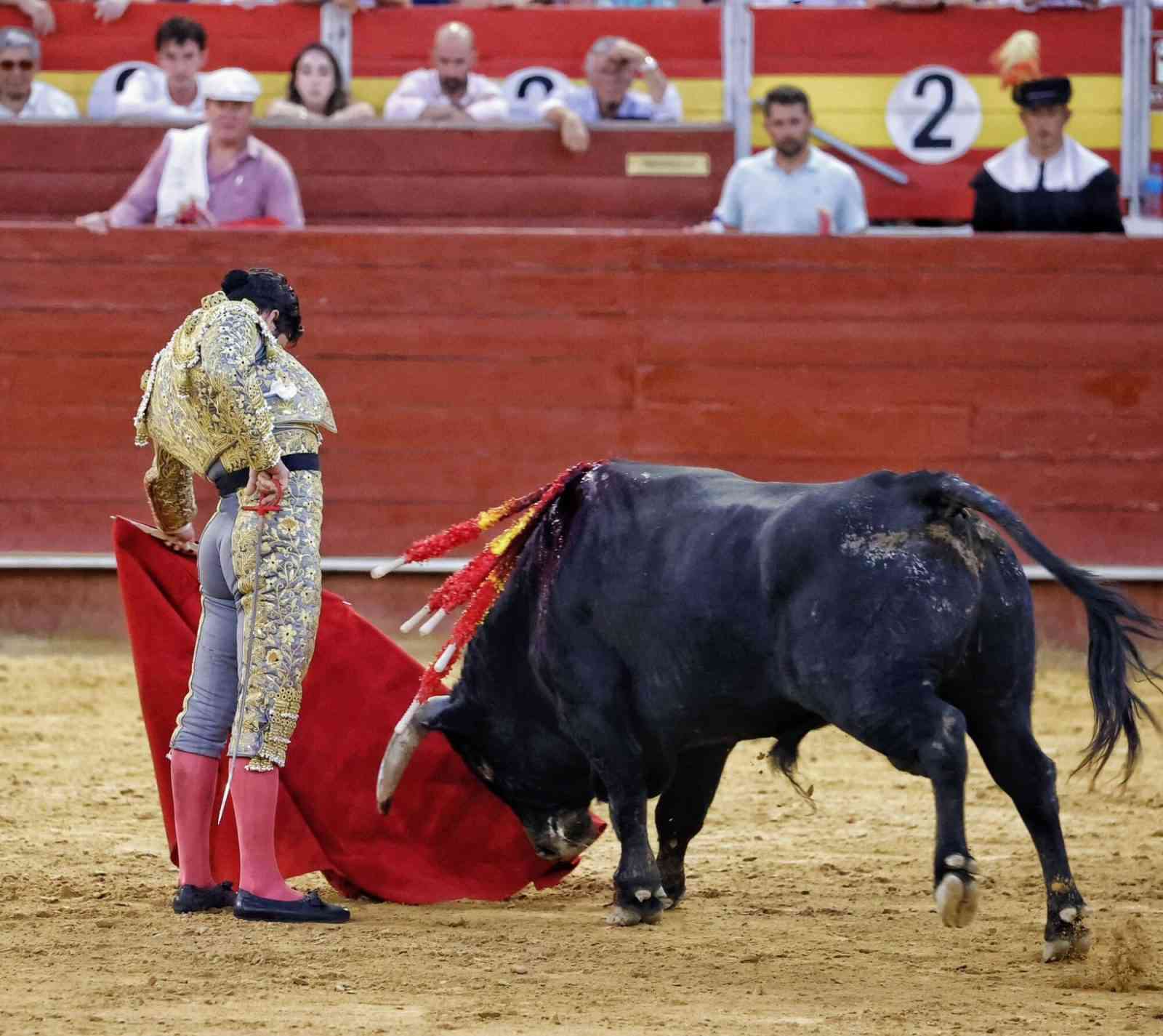 Talavante estuvo sensacional en el tercero. Con el capote lo recibió con afarolados, para luego enjaretar un quite por chicuelinas y luego echarse el capote a la espalda. Con la muleta lo cuajó de principio a fin. Series templadas por el derecho, a un toro noble de Domingo Hernández. Faena cumbre que remató por manoletinas. La espada le privó de las dos orejas, solo paseó una.