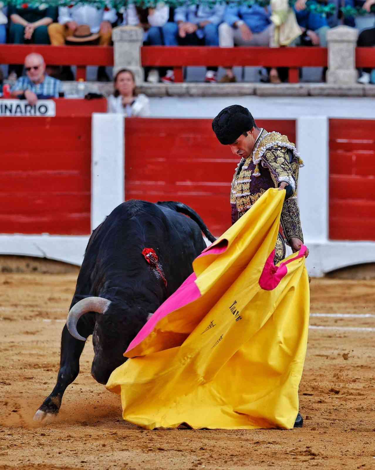 Abrió plaza un bonito ejemplar de La Quinta, noble, pero justo de fuerza. Faena que brindó a Emilio Justo. Talavante lo entendió con la muleta, dándole los tiempos. Estuvo por encima del animal.
