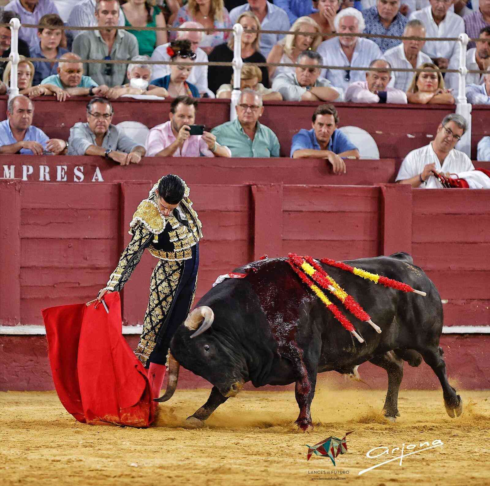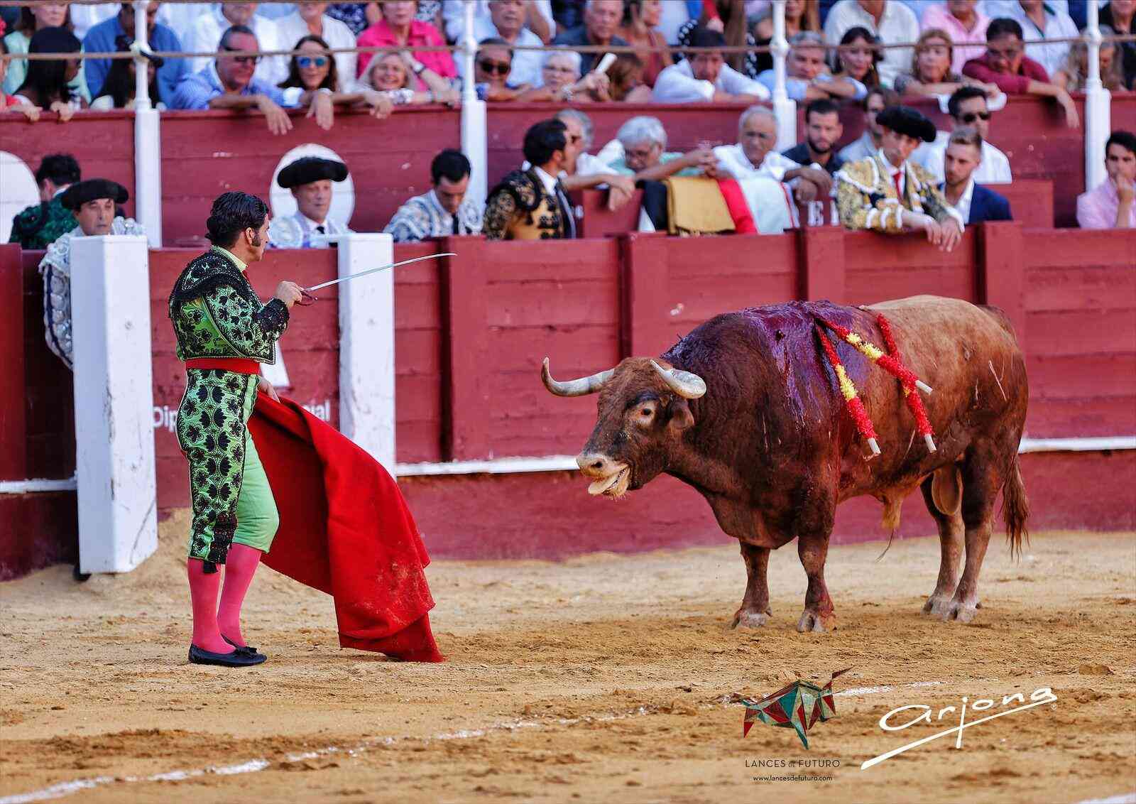 El quinto fue otro toro que salió con muchos pies, pero que repuso a mitad de faena. Firme Talavante. Estocada y silencio.