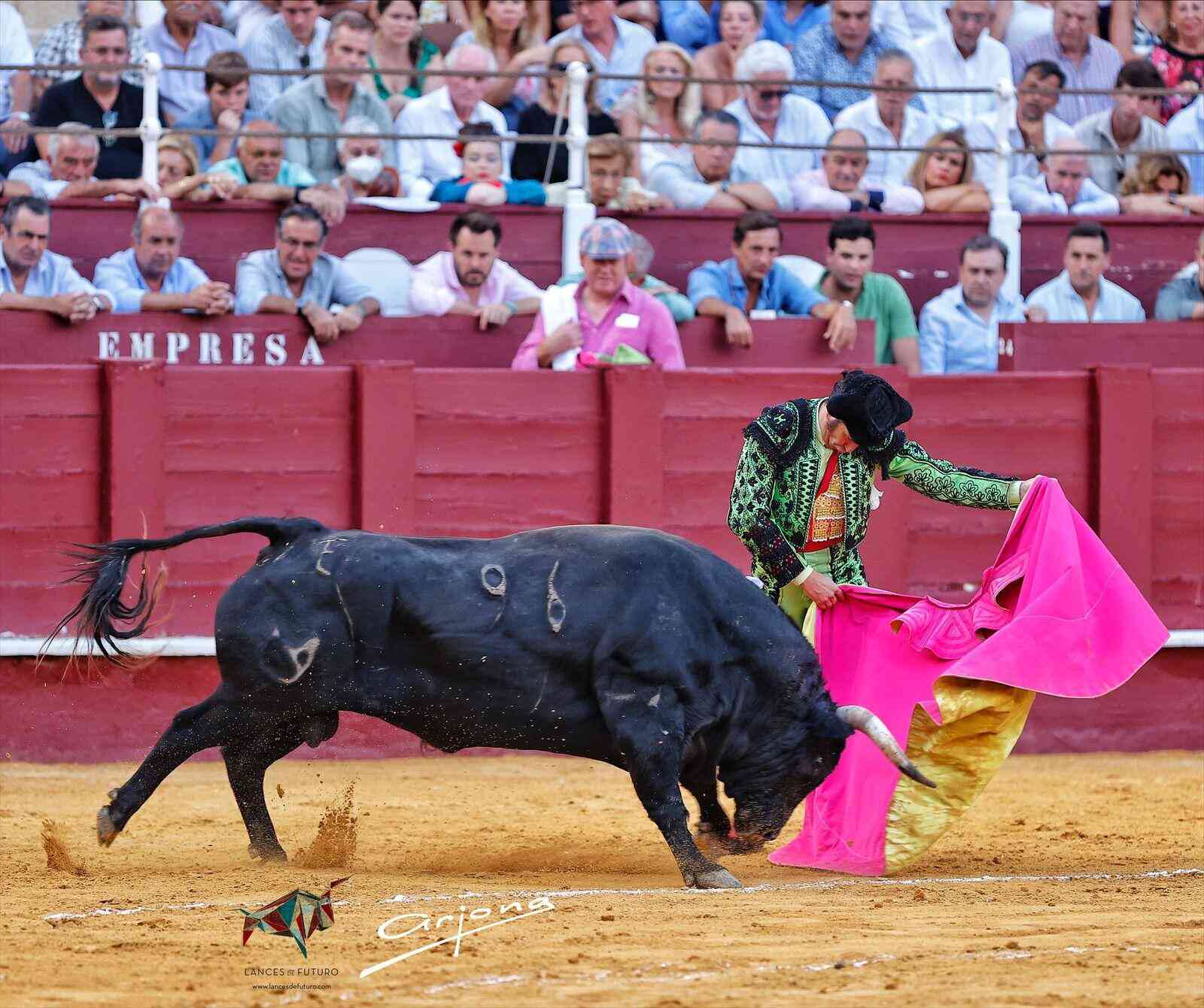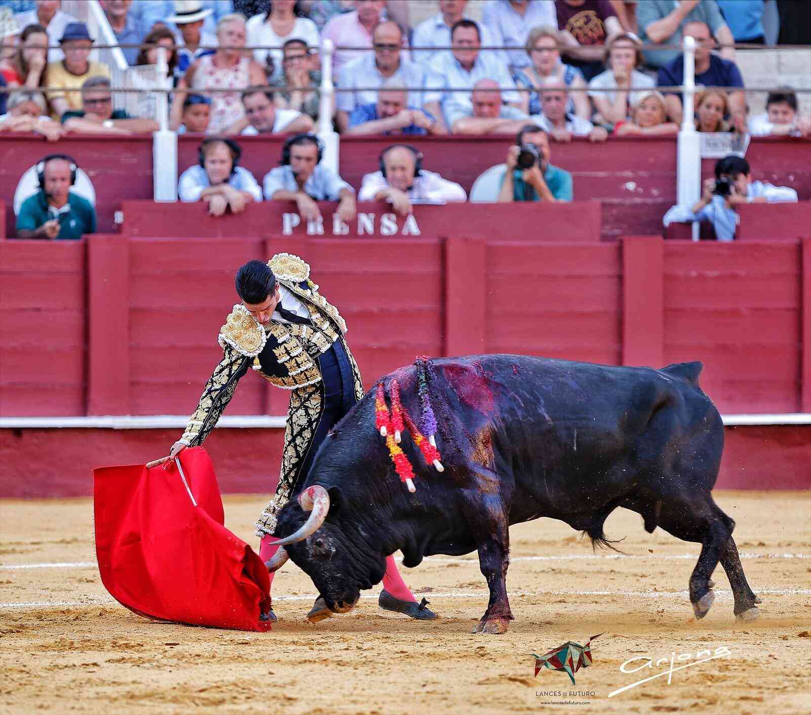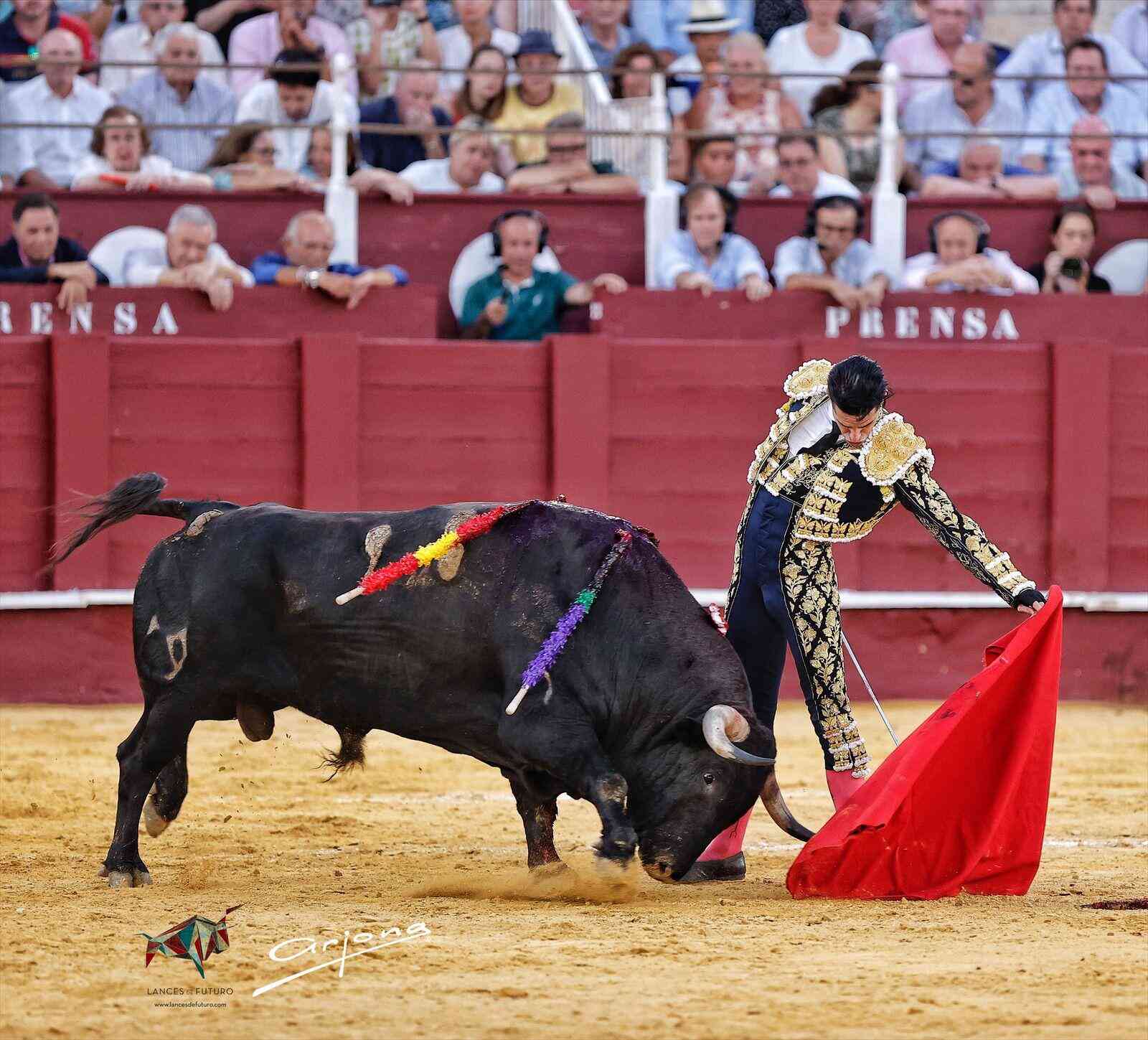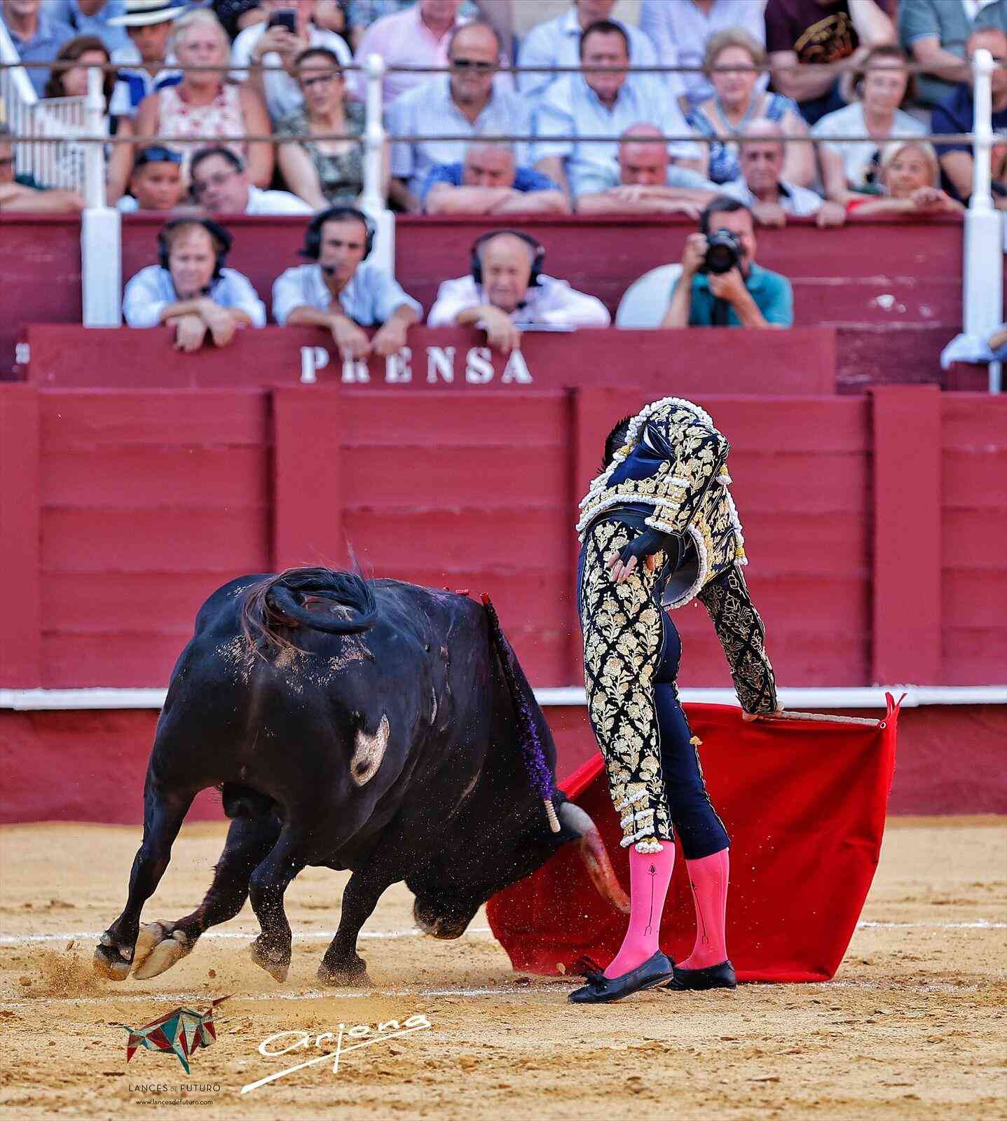 Talavante lidió en segundo lugar un toro serio de Cuvillo y que empujó en el caballo. En la faena Talavante trazó una faena variada, le molestó mucho las rachas de viento. Hubiera sido otra faena sin el viento. Lo mejor fueron las dos series por el pitón derecho con el temple.