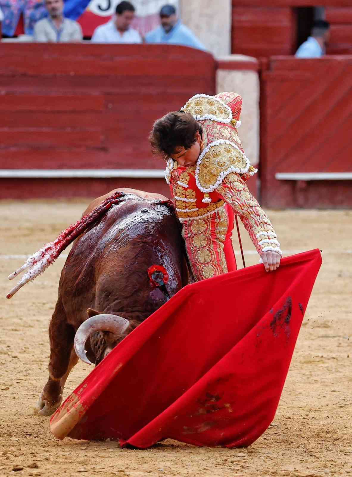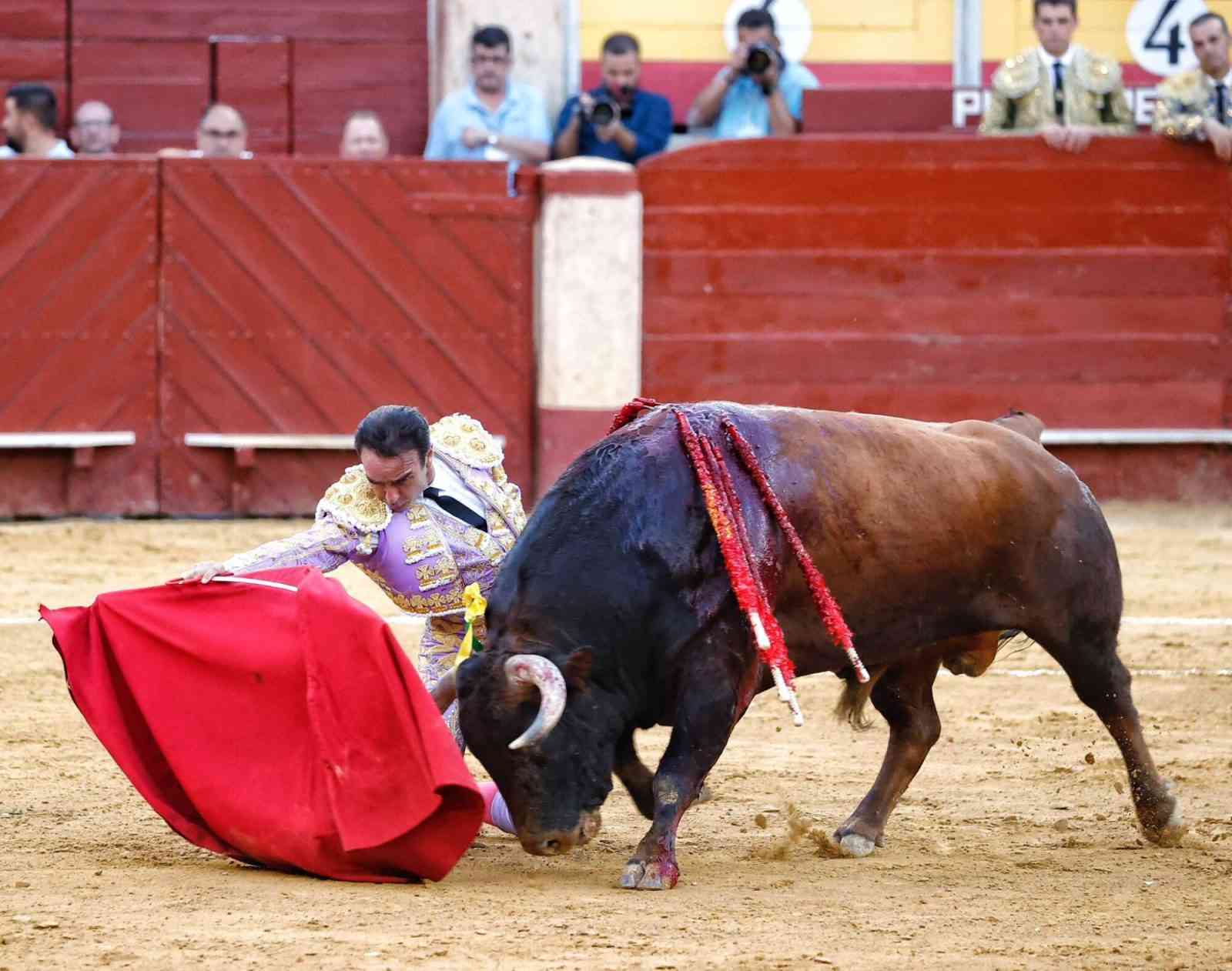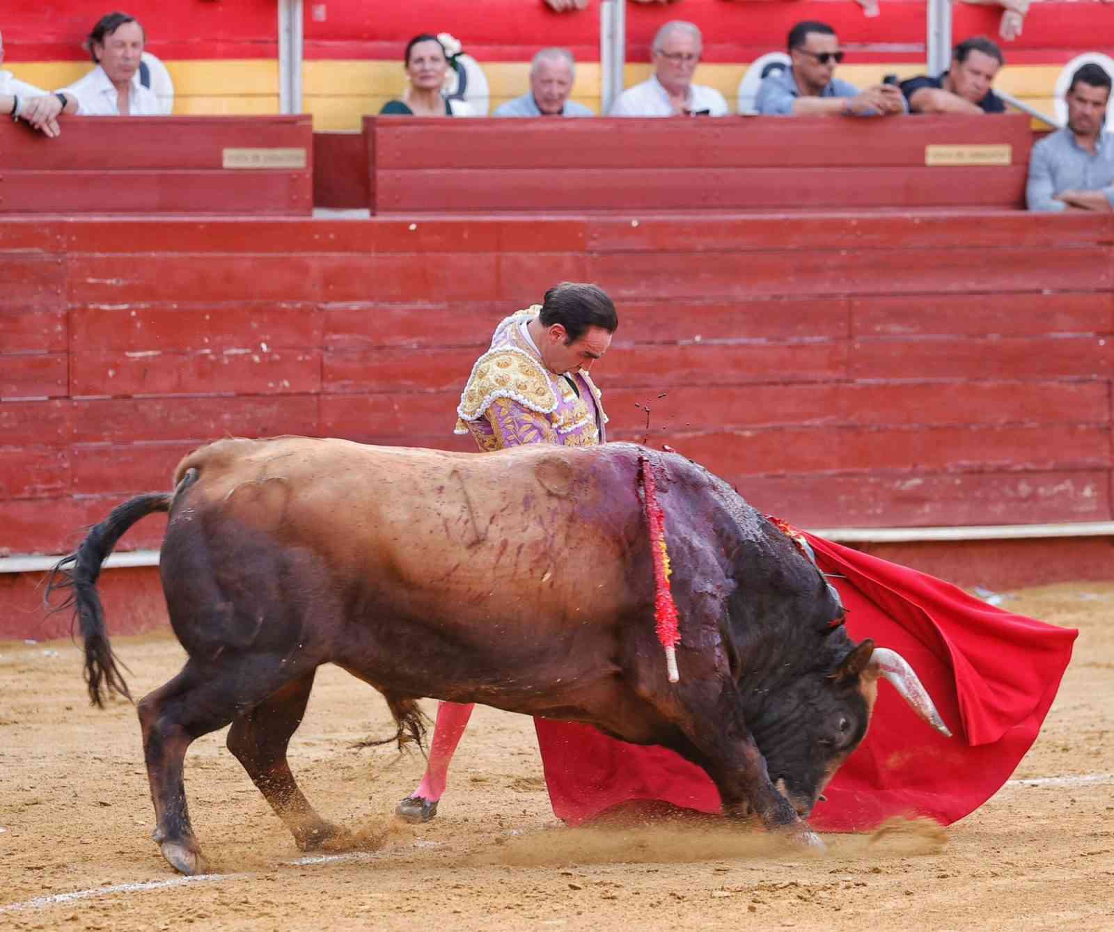 Ponce cortó la oreja del cuarto, el toro de su despedida de Almería. Le realizó una faena de maestro. Lo cuajó por ambos pitones, faena de gran gusto, cargada de detalles. El epílogo las Pocinas pusieron en pie a los tendidos.