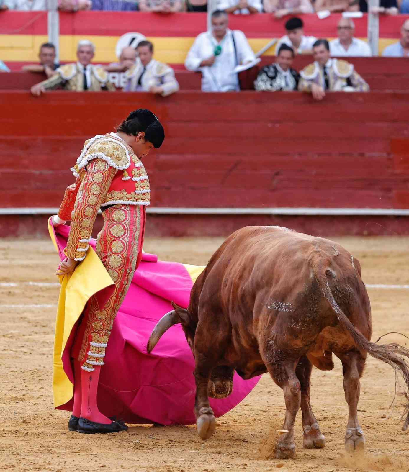 Ponce recibió una gran ovación del público almeriense al finalizar el paseíllo, ovación que compartió con sus compañeros de terna. Le tocó en un toro con recorrido, noble, al que entendió el valenciano. Buena faena por el derecho, series muy templadas. También dejó detalles al natural. El final con las poncinas caló de lleno en los tendidos. Estocada. Dos orejas.