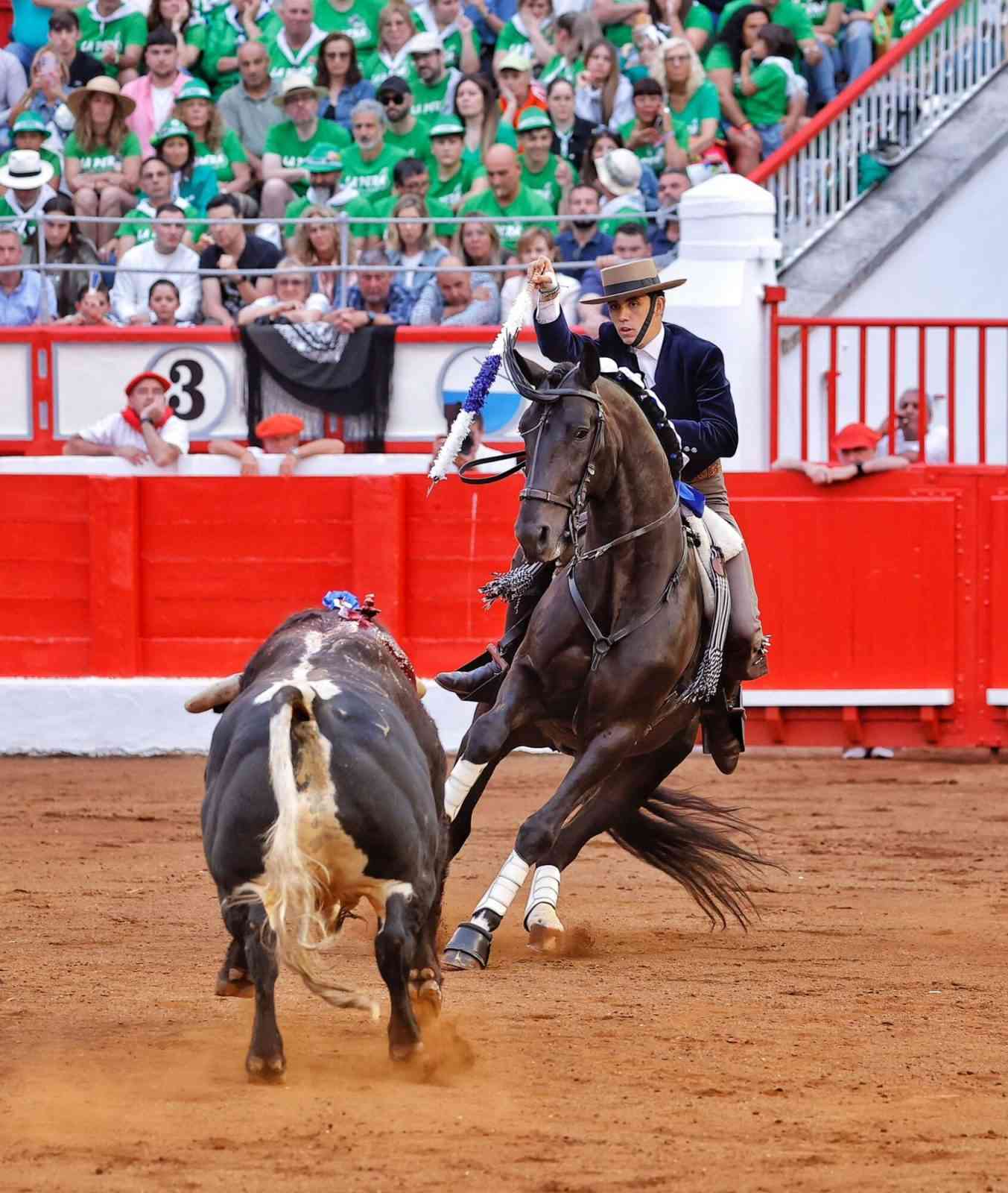 Faena vibrante y espectacular la faena de Cartagena en el cuarto, un animal soso pero al que entendió Andy, primero a lomos de ‘Duende’ y luego con ‘Baena’. Puso la plaza bocabajo en banderillas y en un par a dos manos sin la cabezada el caballo. El colofón fue un acertado rejón de muerte. Sensacional. Dos orejas y rabo.