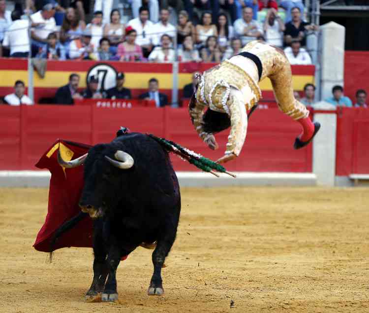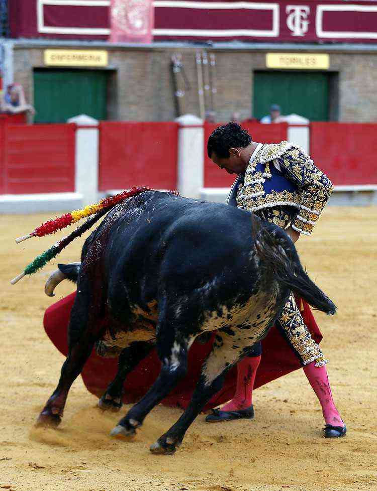 El quite por gaoneras dejó clara las intenciones de Garrido, a pesar de la falta de raza del toro. Inició el trasteo por estatuarios. Una faena que fue de menos a más y donde el torero sufrió una fuerte voltereta. Un salto mortal completo y cayó de rodilla. Se dolió el torero pero se repuso enseguida.