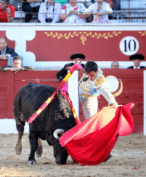 En el sexto también ofreció una gran dimensión ante un toro complicado y con el que se la jugó. Estuvo muy firme Galdós ante las embestidas inciertas y las oleadas del de Buenavista. Molinetes de rodillas, circulares y muletazos pasándoselo muy cerca al final de faena. Estocada y voltereta sin consecuencias. Oreja.